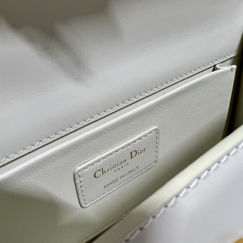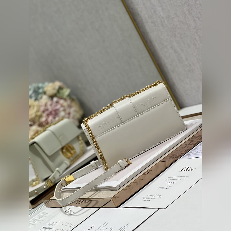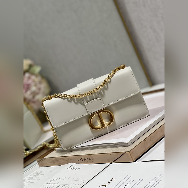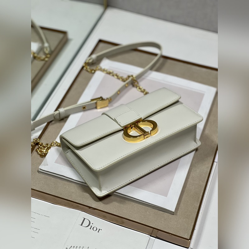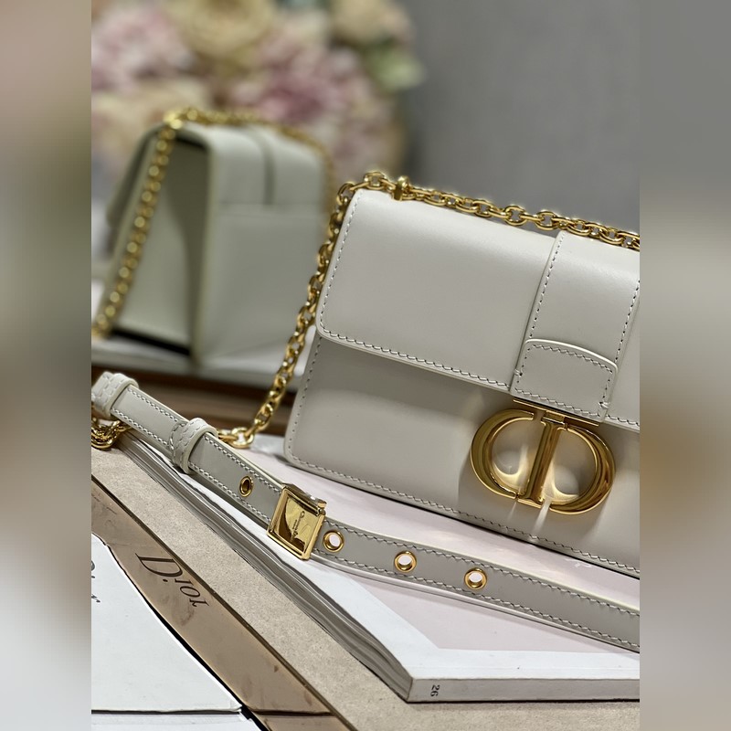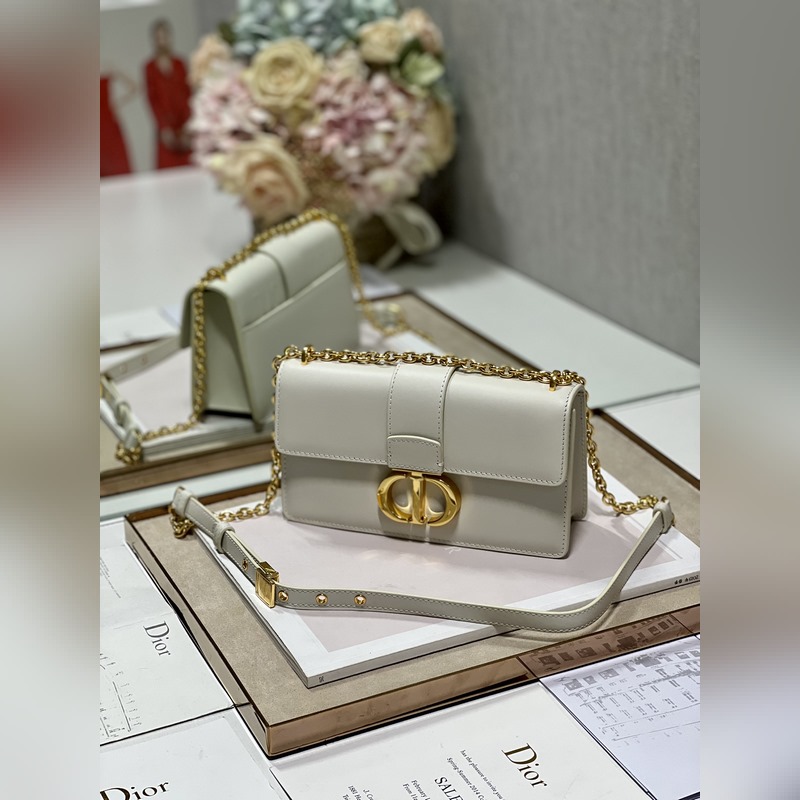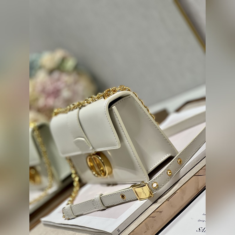 Crafted from creamy white smooth calfskin leather, the classic and elegant design elevates the style of the series. The flap is decorated with a metal CD buckle with an antique gold finish, inspired by the seal of Christian Dior perfume bottles. Other details such as the embossed 30 MONTAIGNE logo on the back highlight the neat design. With a detachable chain shoulder strap decorated with leather panels, it can be carried by hand, on the shoulder or crossbody