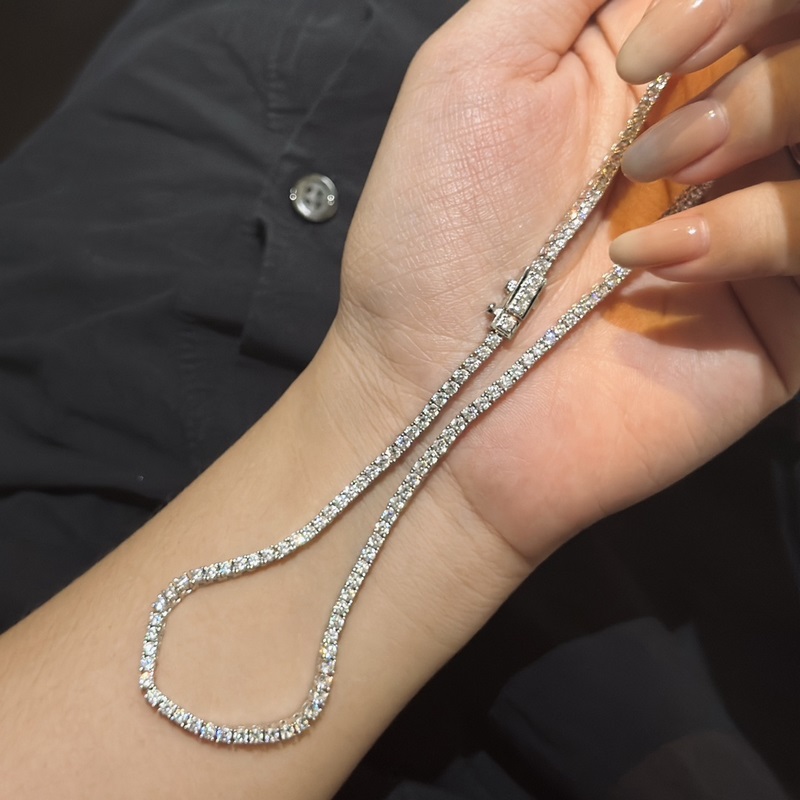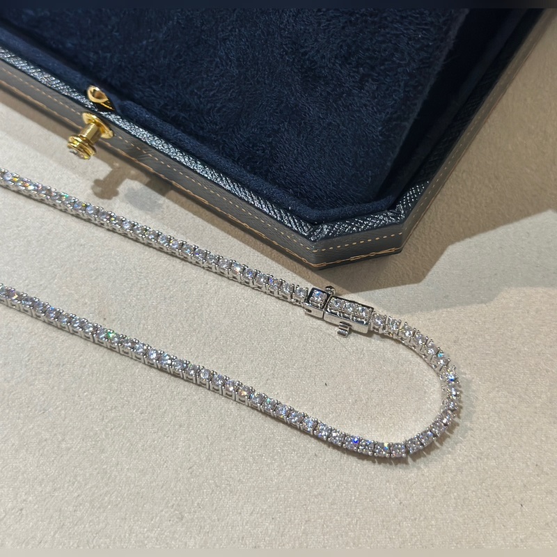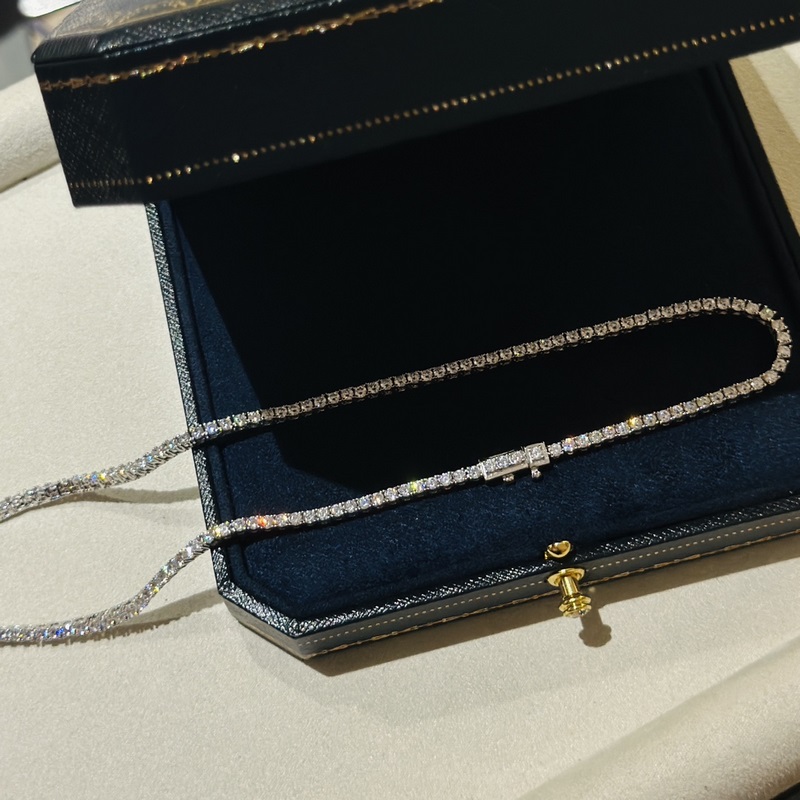 A2081 T-brand four-claw row diamond necklace, popular model, diamond diameter 4mm, about 38cm long, just appeared, afraid that it will be sold out as soon as it comes out. Super flash diamond necklace big brand, eight hearts and eight arrows crystal, surprise surprise, using top diamond 5+ level, fire color is equivalent to moissanite, completely comparable to real gold and real diamond, not sensitive and not fading, electroplated thick gold, sterling silver necklace 275520