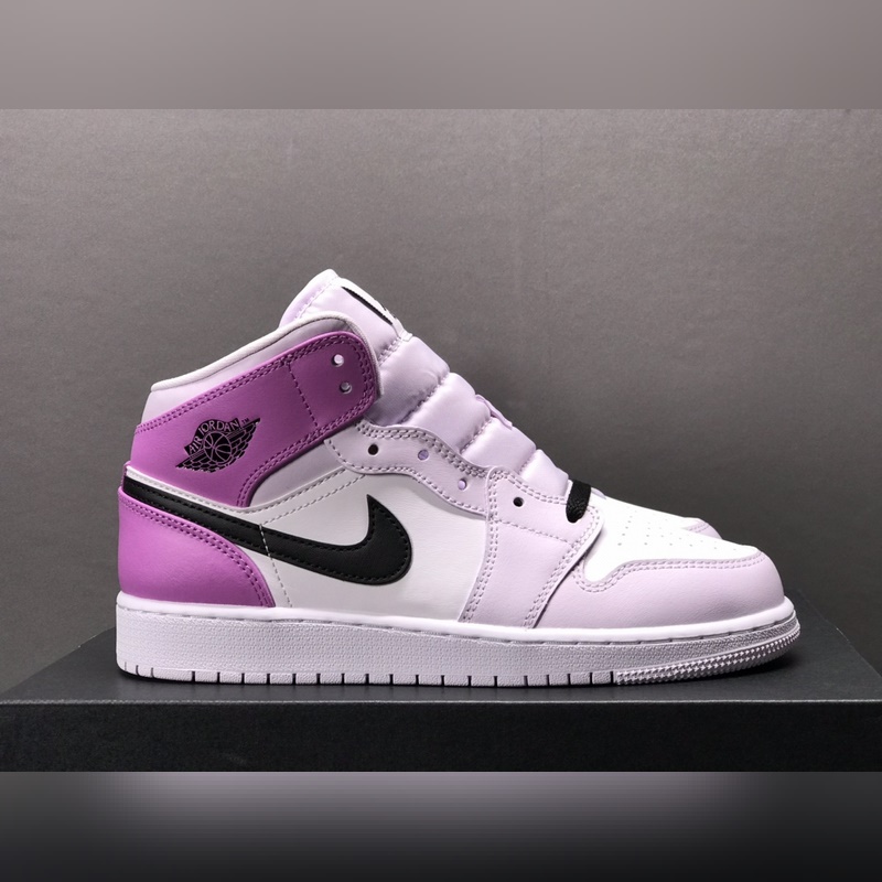 Pure original Air Jordan 1 Mid GS AJ1 Joe 1 Gradient Grape Purple Mid-cut basketball shoes DQ8423-501 Size 35.5 36 36.5 37.5 38 38.5 39 40