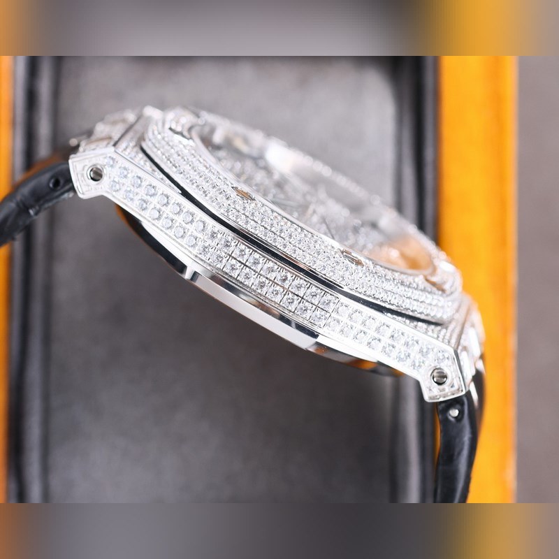 Luxury version Hand-made full diamond boutique men’s watch Noble and elegant ~ style and fashion trend, sapphire scratch-resistant mirror glass, 316 steel imported cowhide belt Size: 40mm×10mm
