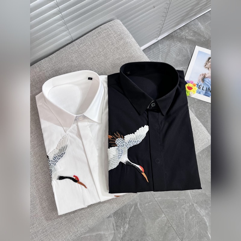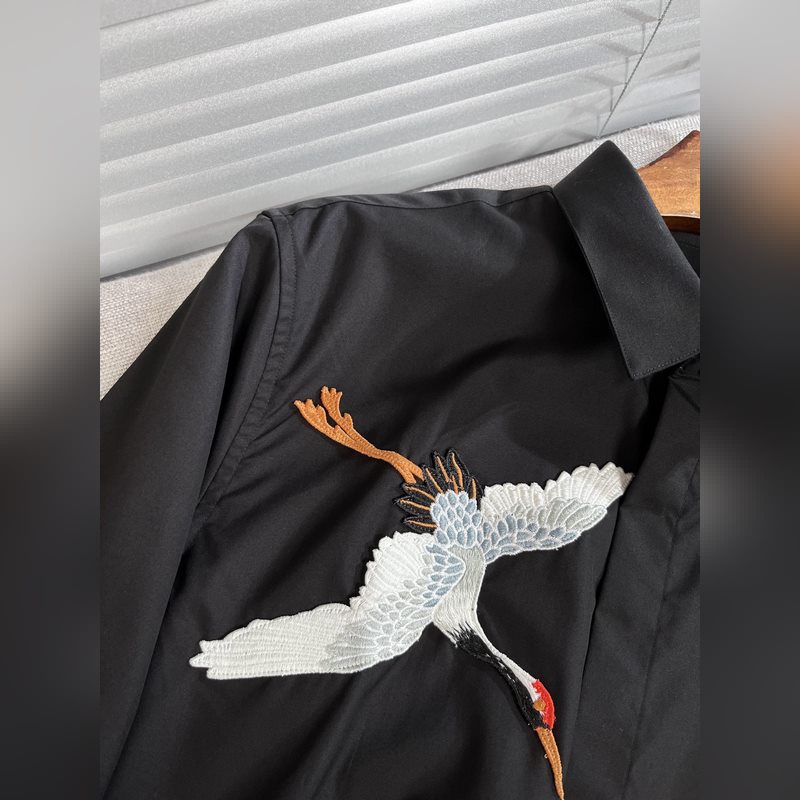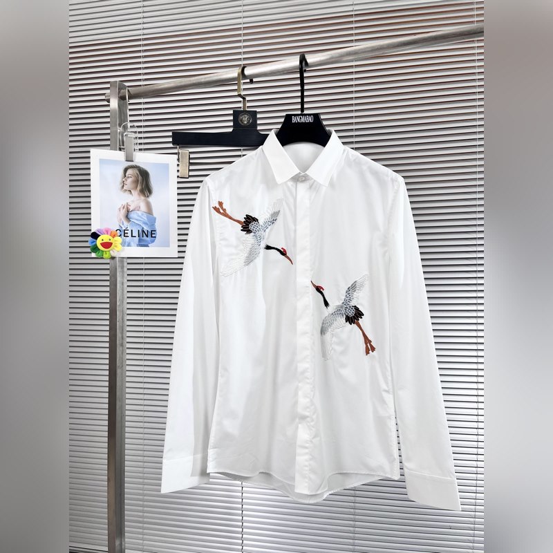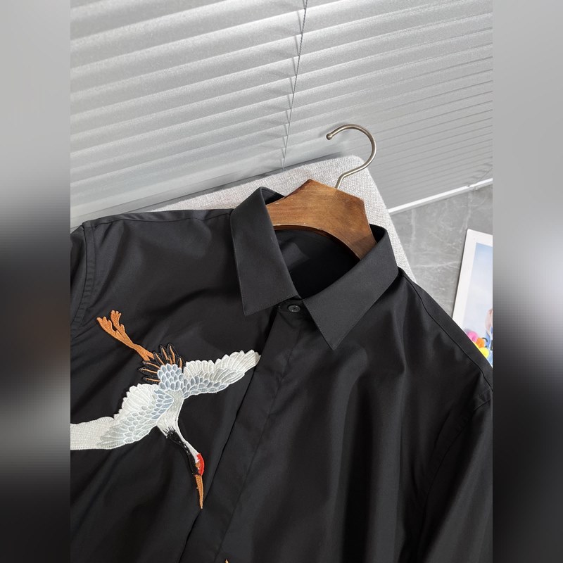 Armani/Ar*mani new long-sleeved shirt White Crane Spreads Wings Embroidered Shirt There are many kinds of shirts, we only make high-end ones. Those who wear shirts are handsome men, and those who pursue excellence and success are classics on the official website. High-end long-sleeved shirts for all seasons. Silk texture, no-iron pure cotton fabric. Original factory product. Fine workmanship. Good-looking is no longer the only standard. Comfortable X1213, the key is to show noble temperament in the crowd. 38-40-42-44-46-48 The model is 1.80 meters tall, weighs 150 pounds, and wears size 42