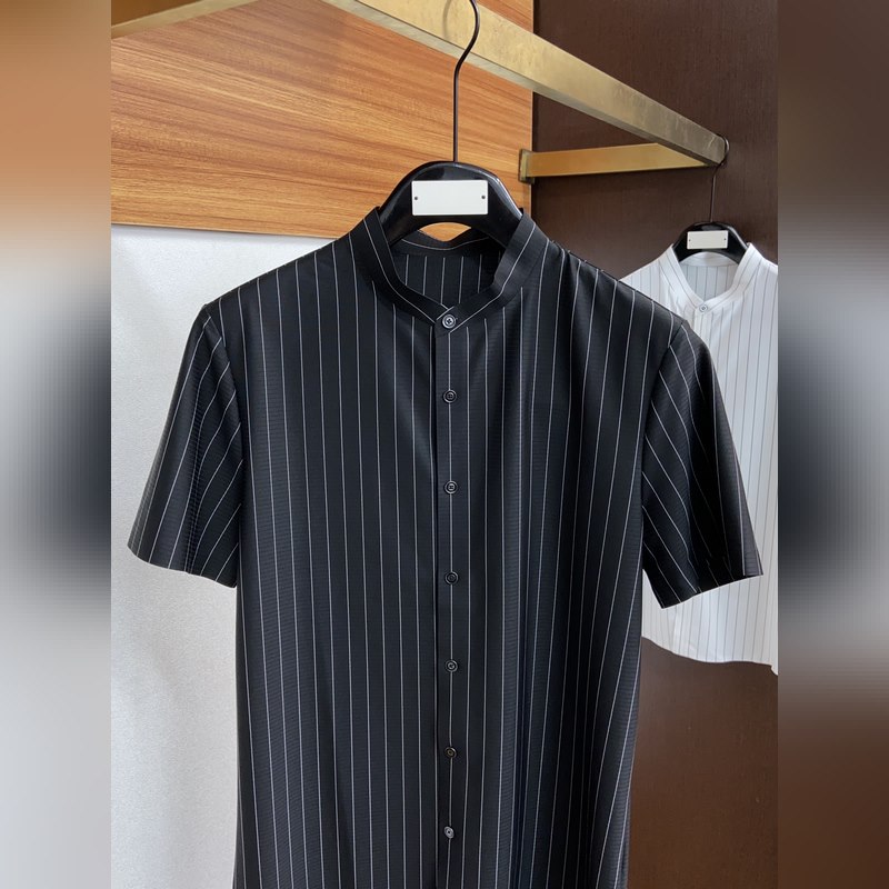 Armani Small stand collar cardigan short sleeves 2023 latest high-grade pure cotton good drape, skin-friendly and cool, breathable and comfortable easy to care for laser cutting plus seamless glue technology, the collar is clean and neat, exquisite and three-dimensional, versatile and easy to wear, with a light luxury and noble temperament to bring you a great wearing feeling M-3xL