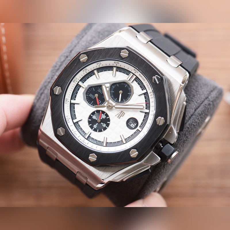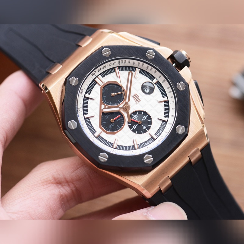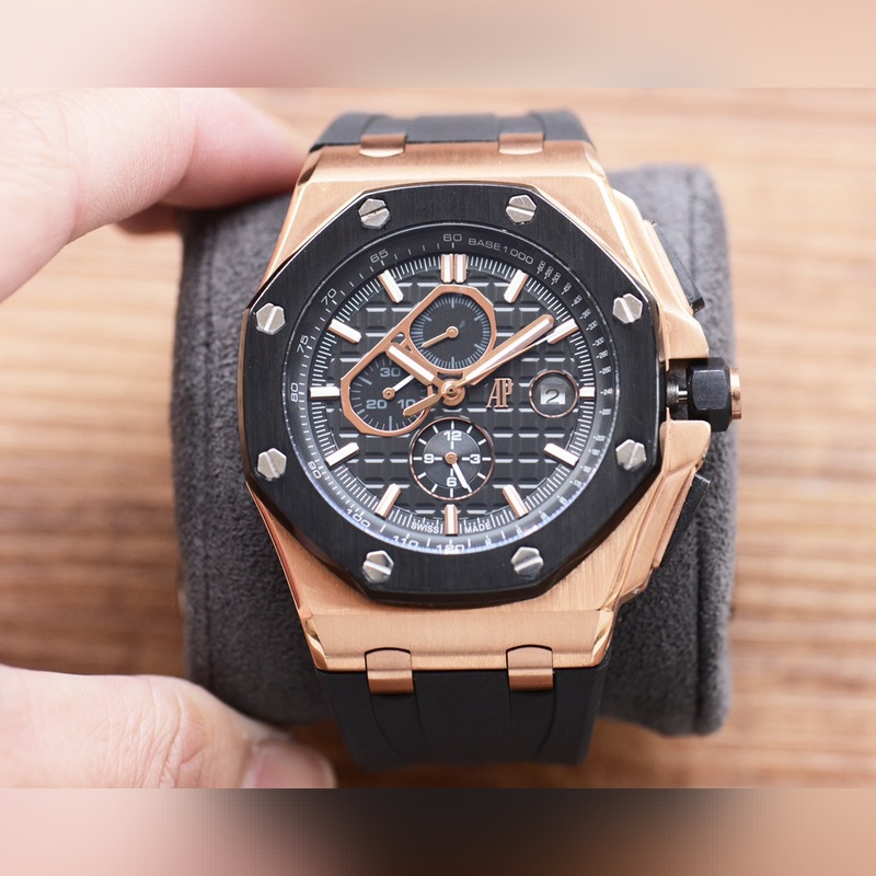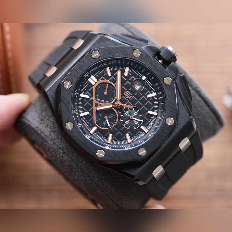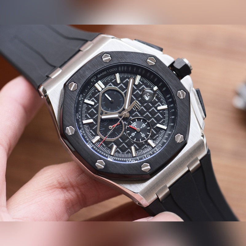 Audemars Piguet Royal Oak Offshore series, automatic winding mechanical movement, 316L stainless steel case, ultra-high hardness crystal glass mirror, 100 meters super waterproof (suitable for diving and swimming), 44mm diameter, 14.4mm thickness, consistent with the original, the dial has Audemars Piguet’s exclusive “Méga Tapisserie” super-large checkered decoration, with a strong three-dimensional sense, upgraded with super luminous function, the entire case is CNC processed, perfectly restoring the original structure, the strap is made of rubber, the softness is consistent with the original, showing the man’s domineering, please look for the exclusive quality of the Royal Oak Offshore enhanced version