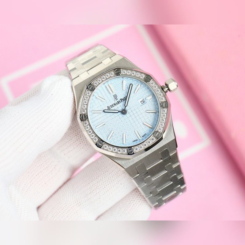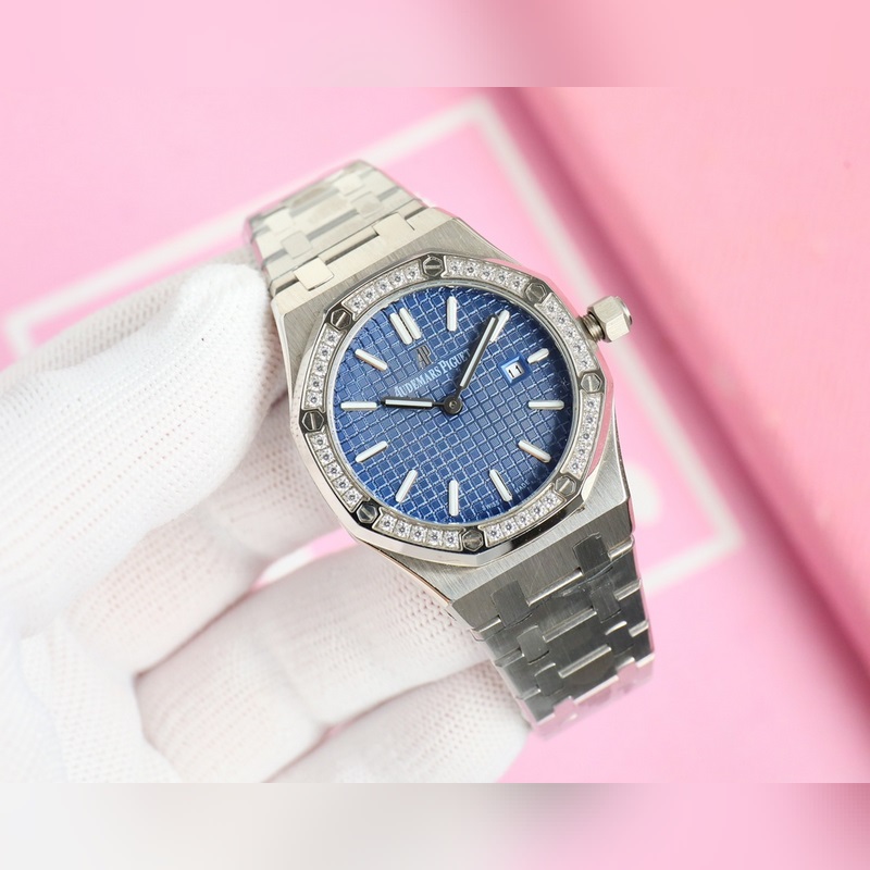 Audemars Piguet AP-Royal Oak series The dial is decorated with Lady Tapisserie checkered decoration, presenting a stronger visual impact. The watch is 33mm, which caters to the modern pursuit of large-diameter women’s watches, creating a more heroic side of women, shining brightly. Full of texture, equipped with imported quartz movement, mineral-coated glass, 316 stainless steel case, highlighting the best classic among the dynamic women’s models. Best luxury recommendation for gifts. Please look for the exclusive quality