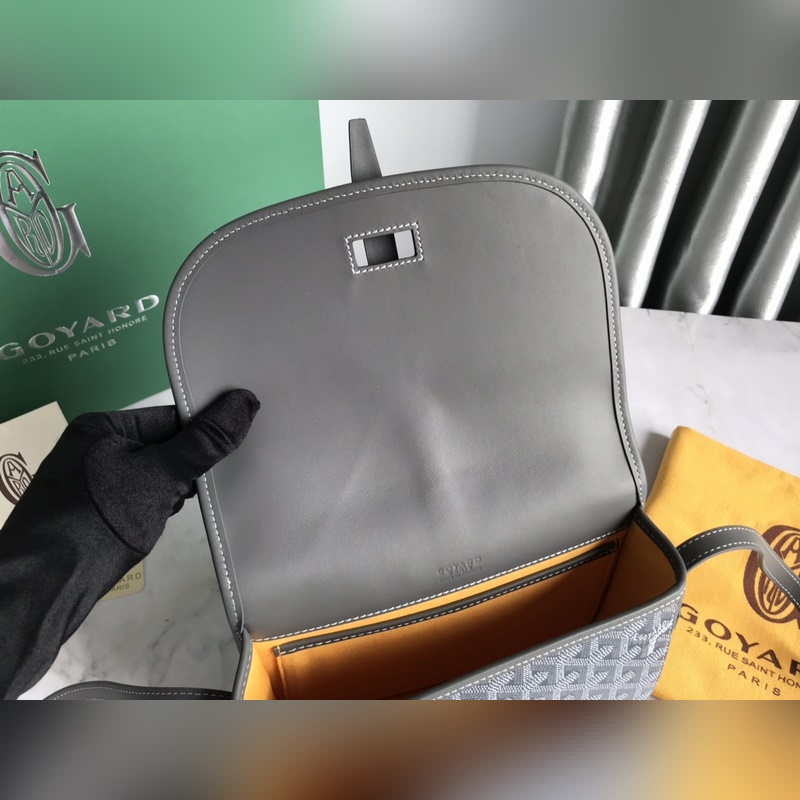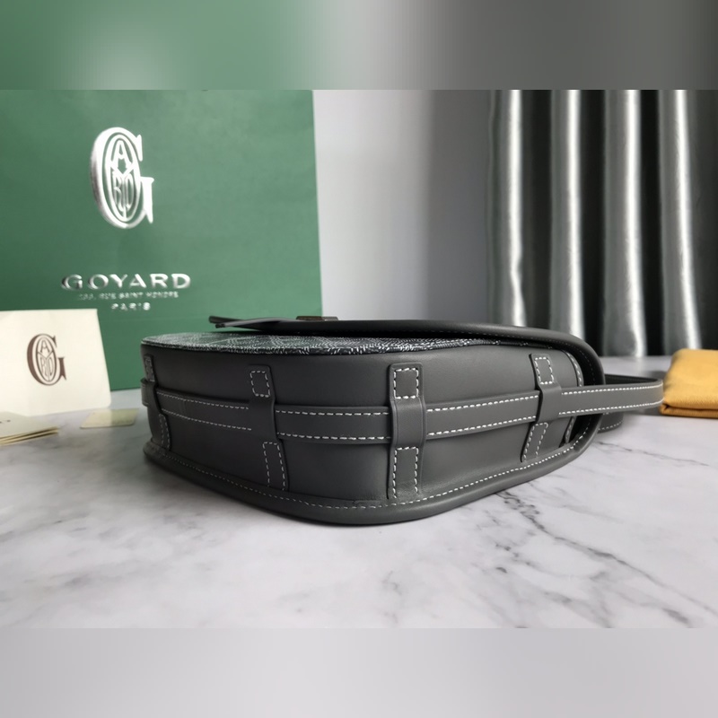 Goyard’s new Belvédère messenger bag, small size 020198, has the most classic characteristics, simple and elegant, lightweight and practical. The single narrow buckle passes smoothly through the metal ring and can be opened and closed easily; the leather trim highlights the outline of the bag in a linear way, and the leather lining of the flap also makes the bag’s silhouette more three-dimensional. The Belvédère 2 bag has three built-in pockets to properly store daily necessities, and has an adjustable shoulder strap that can be used as a crossbody bag or a shoulder bag. Its ingenious design is a new interpretation of Goyard’s traditional craftsmanship, while also showcasing the ultimate minimalist style and sports fashion spirit. The fabric is made of thickened rain and dew linen with flax, hemp fiber and cotton as the main components. Custom-made smooth leather, all-steel hardware, number of matching stitches, size: 21*16*6Cm
