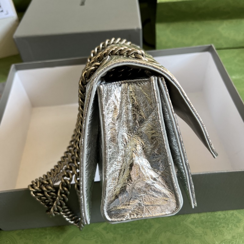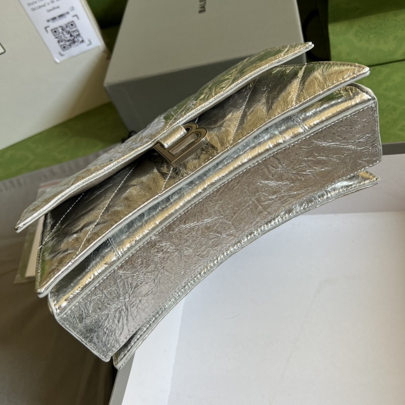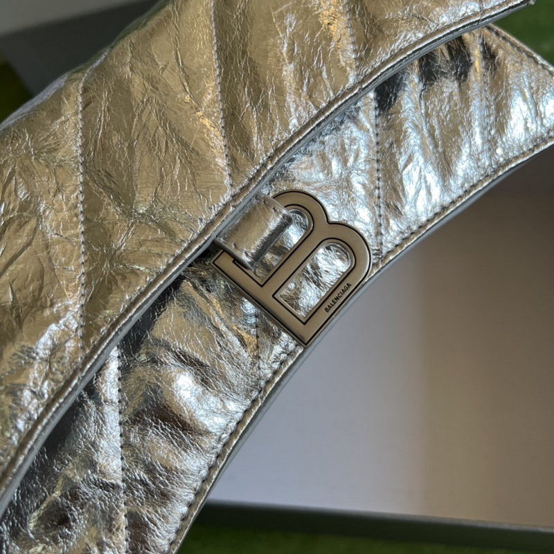 From the Balenciaga 22nd Autumn and Winter Series, the powerful and practical large bag has made a strong comeback. The silhouette of the hourglass bag is the basis, and the front is decorated with a classic metal B logo. The super soft calf leather is specially treated to present a texture of wrinkled paper; the oblique quilting filling process has a feeling of down space suit. The super soft and elastic bag is not only large in capacity, but also has multiple storage compartments inside; the thick metal chain strap allows users to freely adjust the length. Whether it is a single chain shoulder or a double chain handbag, or an underarm bag, it can show a completely different temperament, and the casual and atmospheric style is coming. Chain length: 50cm.
