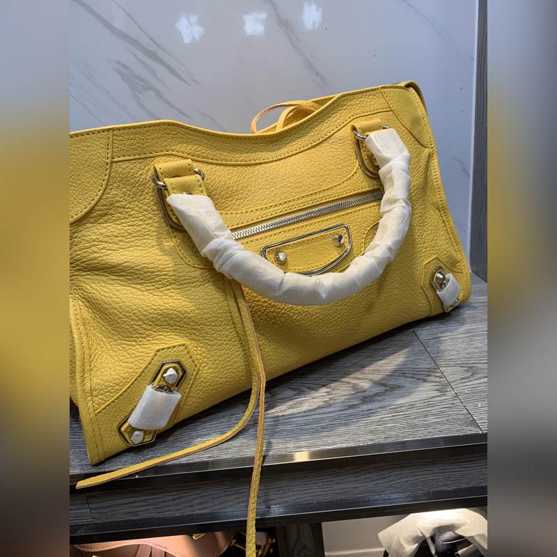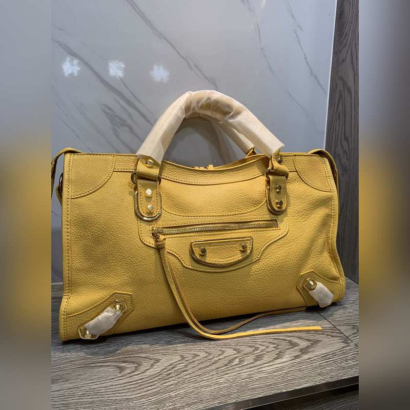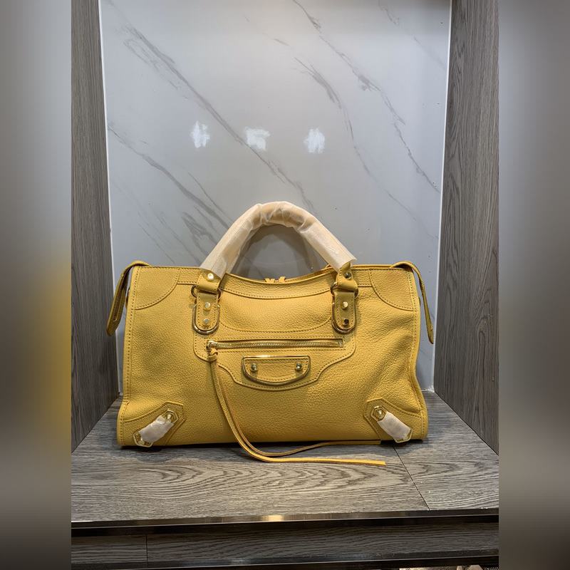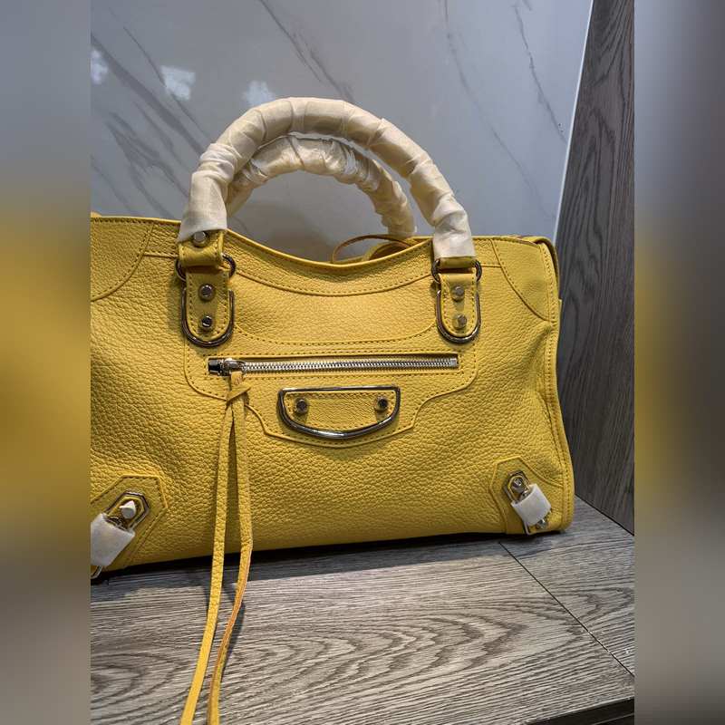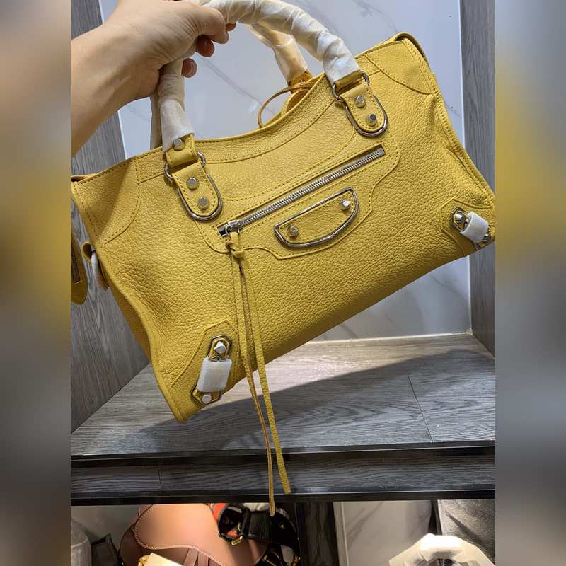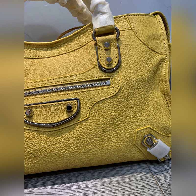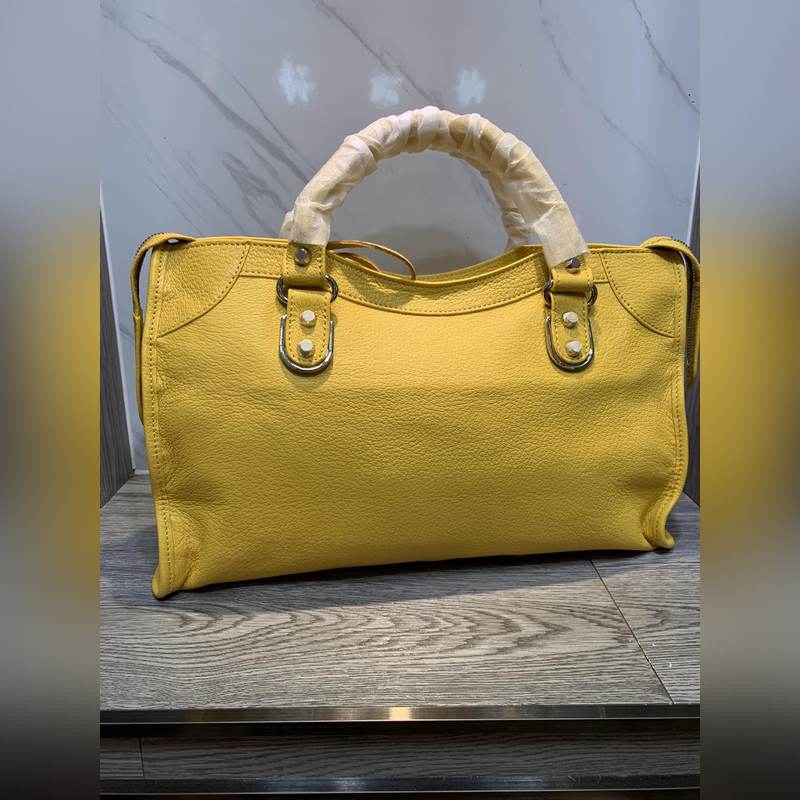 Balenciaga Goatskin Motorcycle Bag Large Yellow Silver Studs, Size 38cm Ref: BLSJ9618980