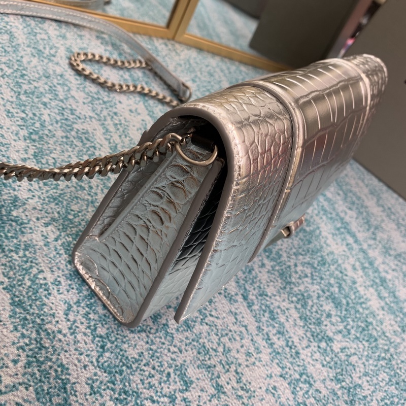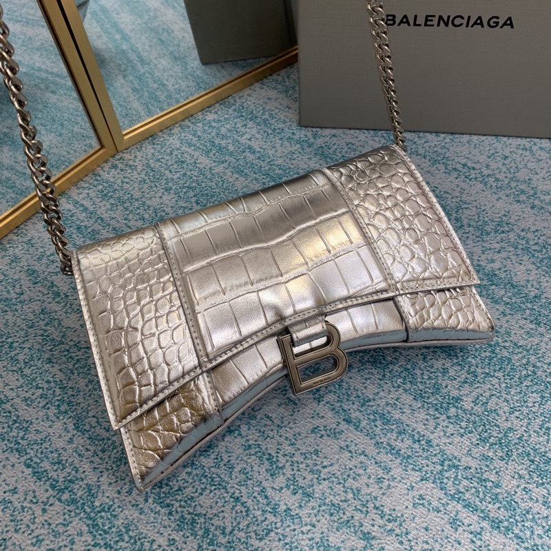 Balenciaga Chain Hourglass Bag Hourglass Chain Bag Shiny crocodile embossed leather
