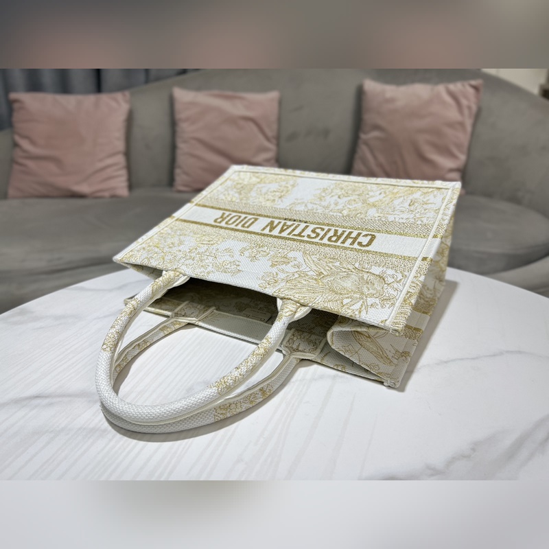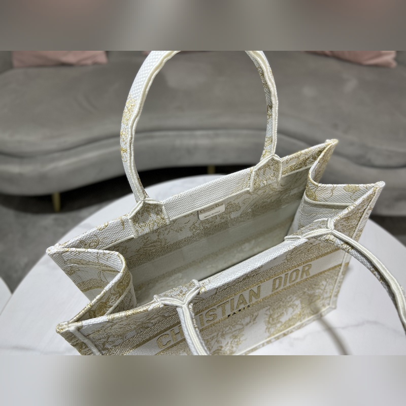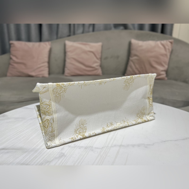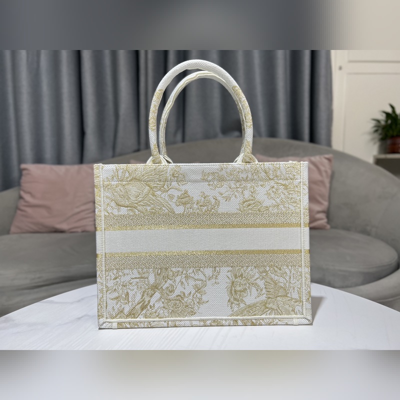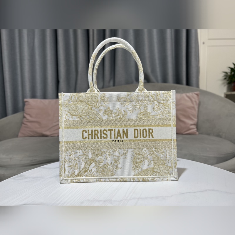 Designed by Maria Grazia Chiuri, Creative Director of Dior Women’s Collections, the Book Tote is a staple of the Dior aesthetic. Embroidered with the Dior Jardin d’Hiver motif throughout and enhanced with gold metallic thread, it is a poetic interpretation of Monsieur Dior’s tapestry and can accommodate all your daily essentials. The medium size features the CHRISTIAN DIOR PARIS signature on the front, a tribute to Dior’s savoir-faire, and can be carried by hand or on the shoulder.