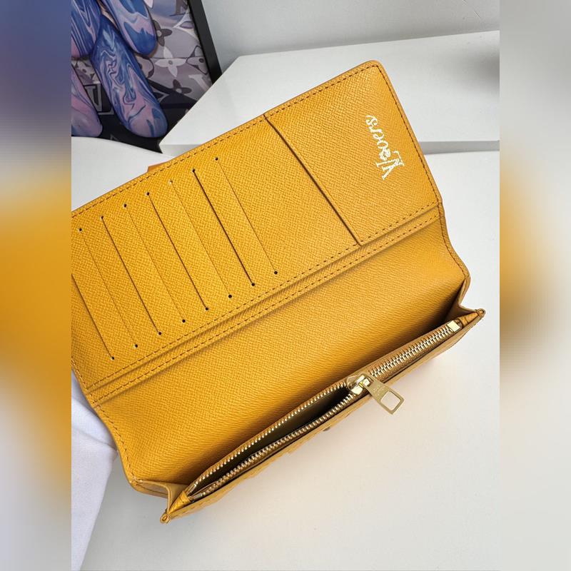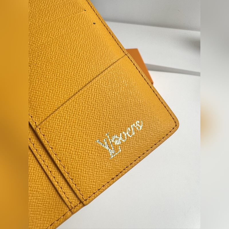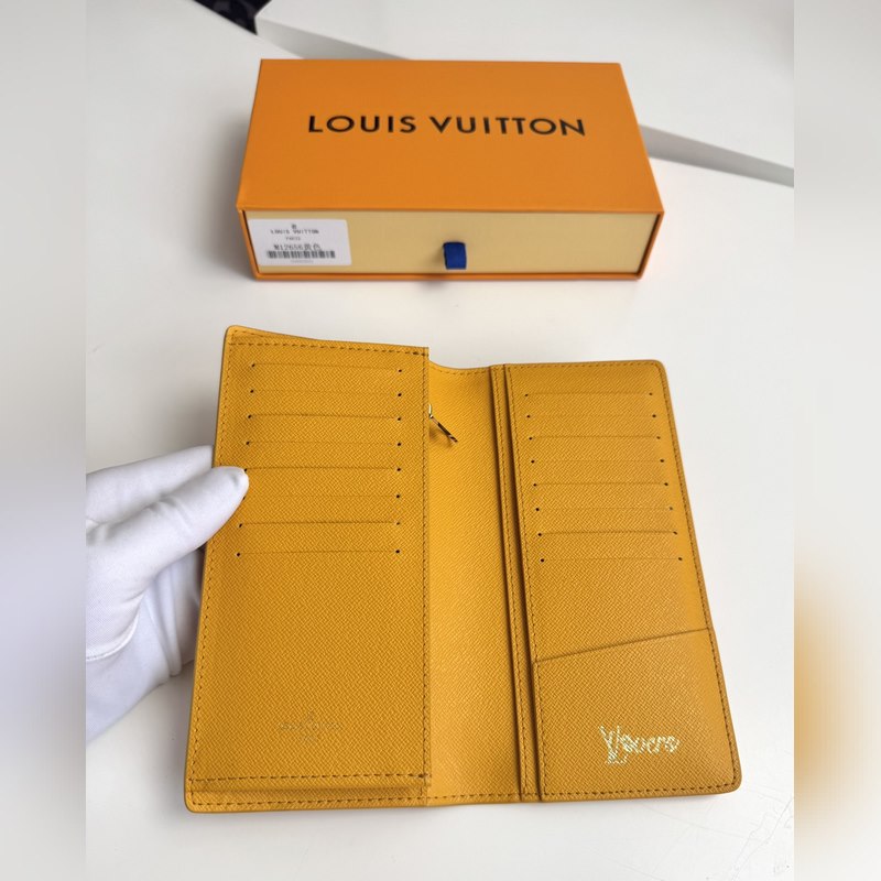 Exclusive real shot of the original M12656 yellow from overseas. This Brazza wallet is made of Monogram Heritage canvas, witnessing Pharrell Williams’s new interpretation of the iconic Monogram pattern. The criss-cross texture and Marque L.Vuitton Déposée logo show the classic elements of the original Damier print, with multiple card slots and compartments, making the long design functional. Size: 19×10×2cm