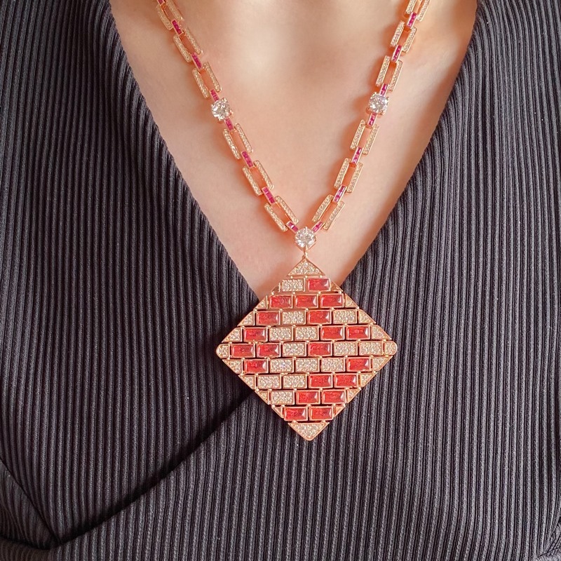 Real price, no refund or exchange 3550300 High-grade precision Bulgari square red corundum necklace, luxurious and atmospheric Italian craftsmanship inlaid thickened gold-plated + nano T square red corundum decoration. The length of the whole body is about 30 cm. Finely crafted. The whole body is five lasers. It will not break as easily as before. It is consistent with the official website. It is not a small circle. Perfect interpretation