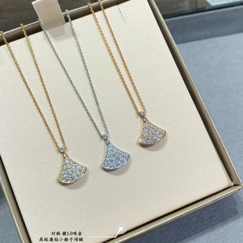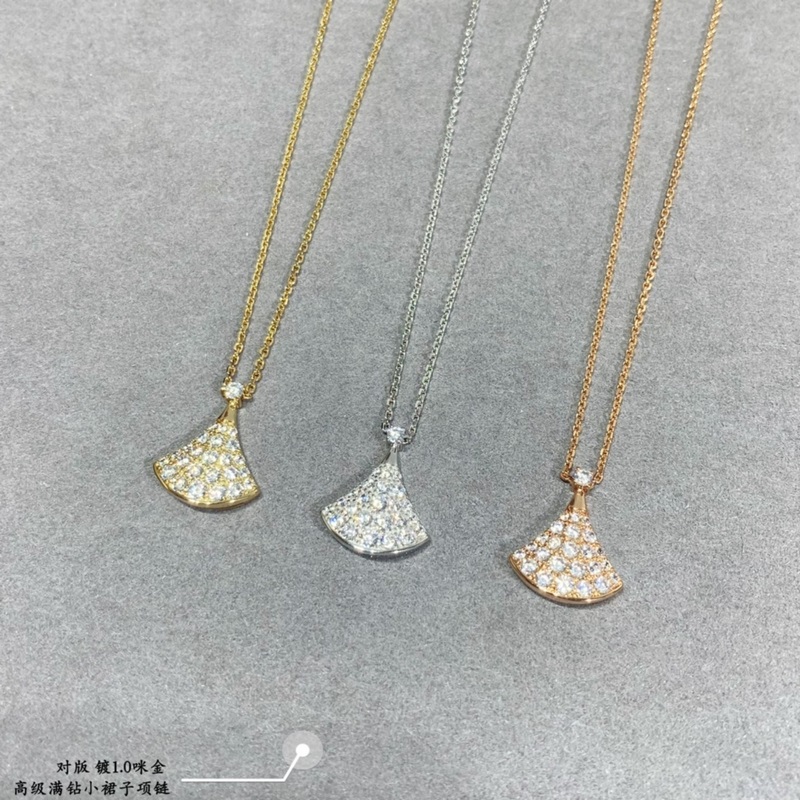 Bulgari high-end diamond small fan-shaped skirt necklace high-end custom hot counter diamond fan-shaped skirt original logo so beautiful all-match style, top version