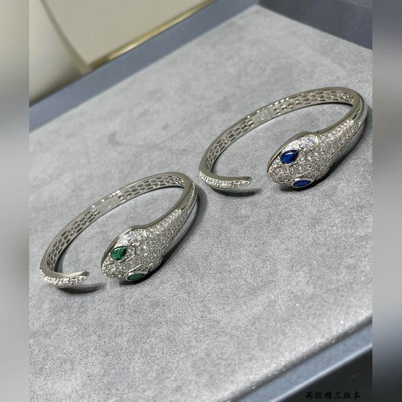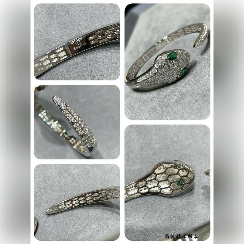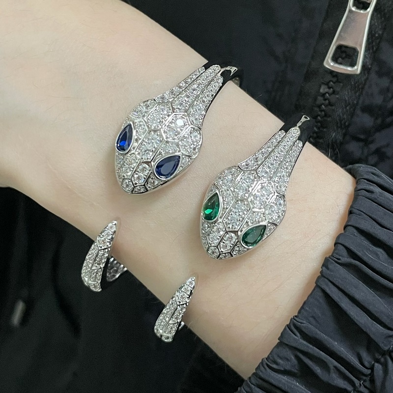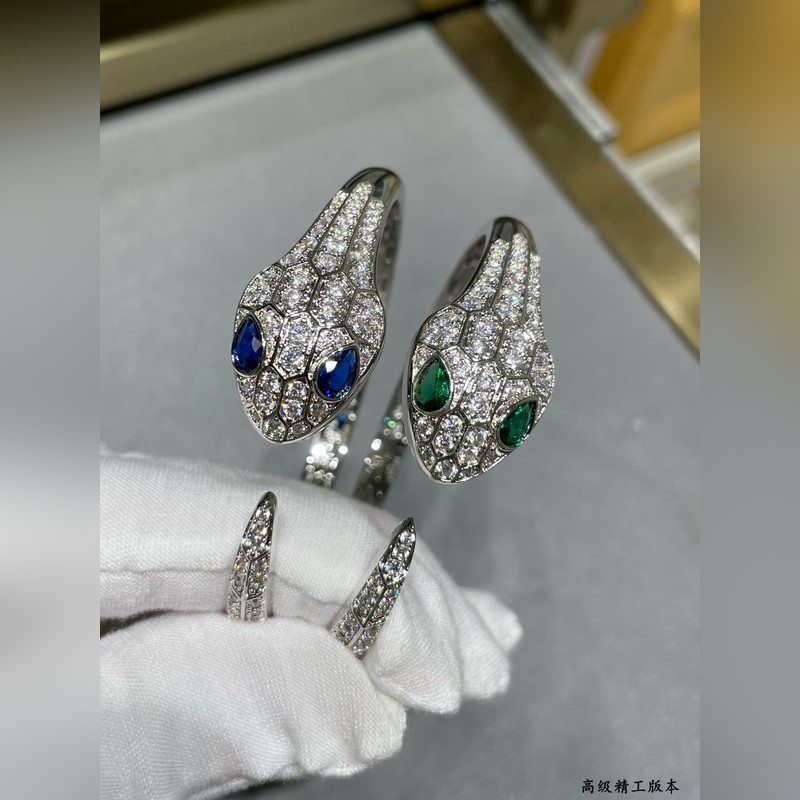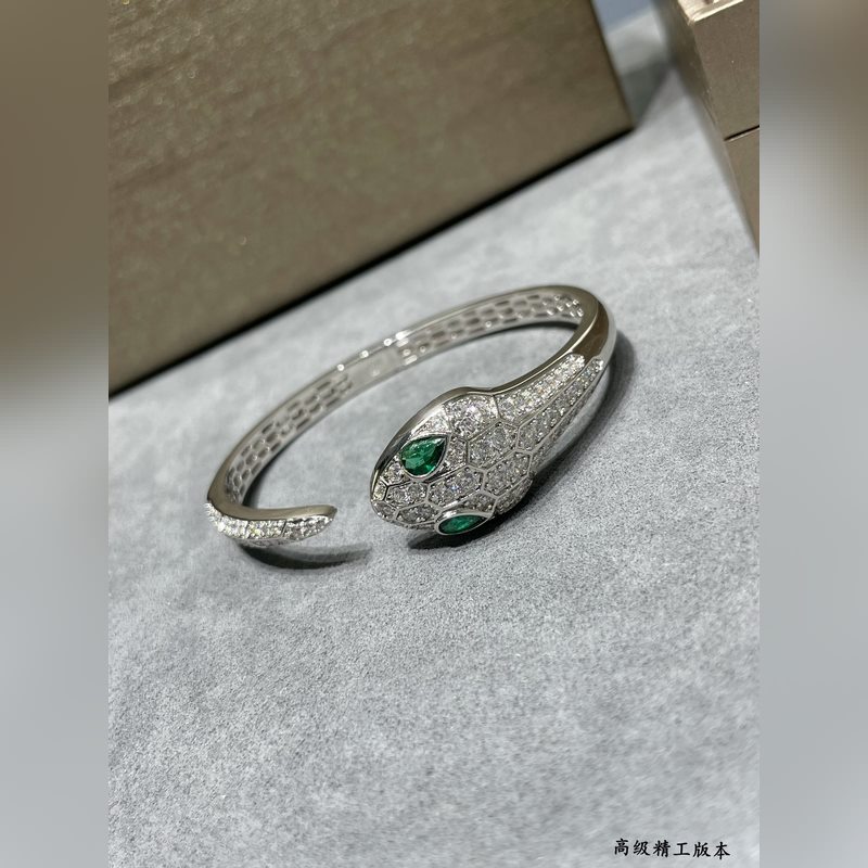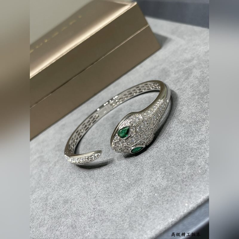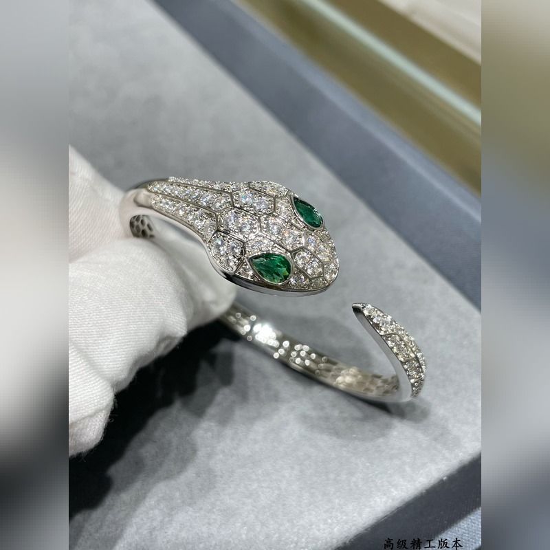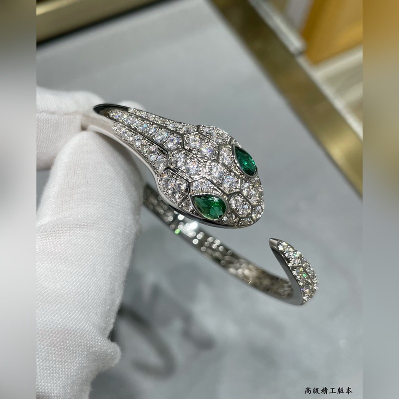 Yajin 2140290 Bulgari high-end green eyes full diamond open snake bracelet Fashion high-end boutique Luxury snake upgraded version BVLGARI Popular Imported craftsmanship Full of high carbon diamonds, perfect inner ring Hollow mesh bottom Real gold electroplating, lifelike shape