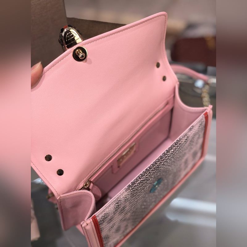 Latest model, I really love this color combination, whether it is daily or cocktail party, even disco, it is completely OK, the space is sufficient. The material is imported fetal cowhide/water snake pattern, shiny, pink and tender, with various functions, very fairy and beautiful, can be used as a crossbody shoulder bag, versatile and changeable.