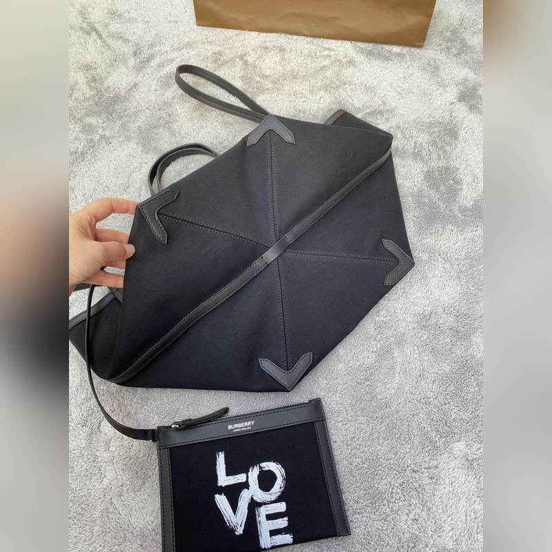 The casual everyday bag shows a relaxed and lazy attitude. It is made of twill cotton fabric decorated with smooth leather and embellished with Love pattern. The bag has a detachable zipper storage bag, which is convenient for storing small personal items. ∩Handheld or shoulder-carried 24 x 35 x 31.5cm Code: YK96181130