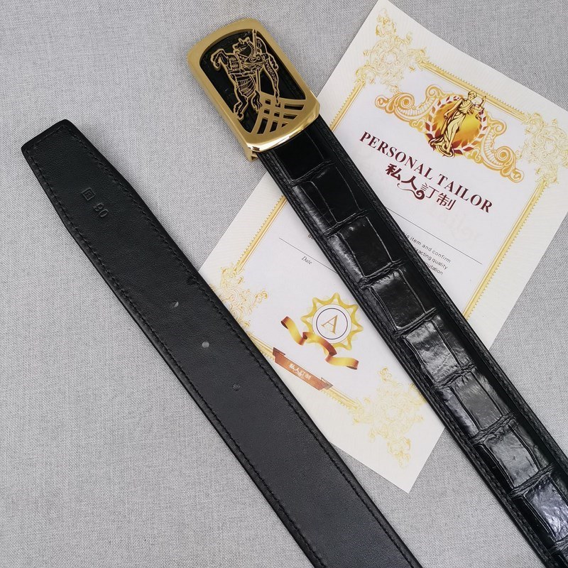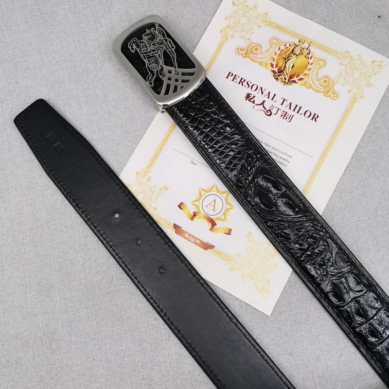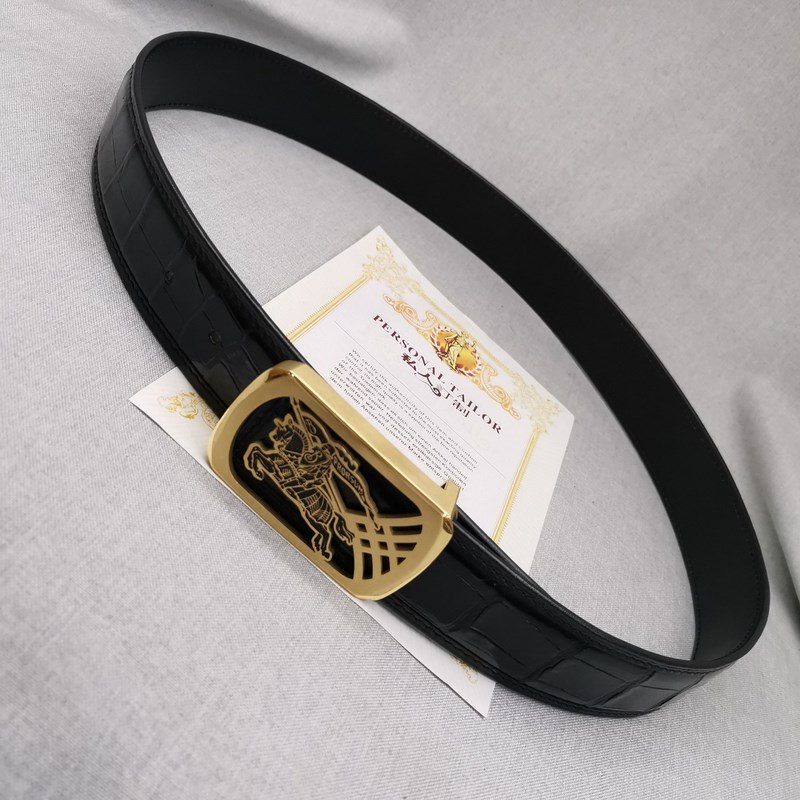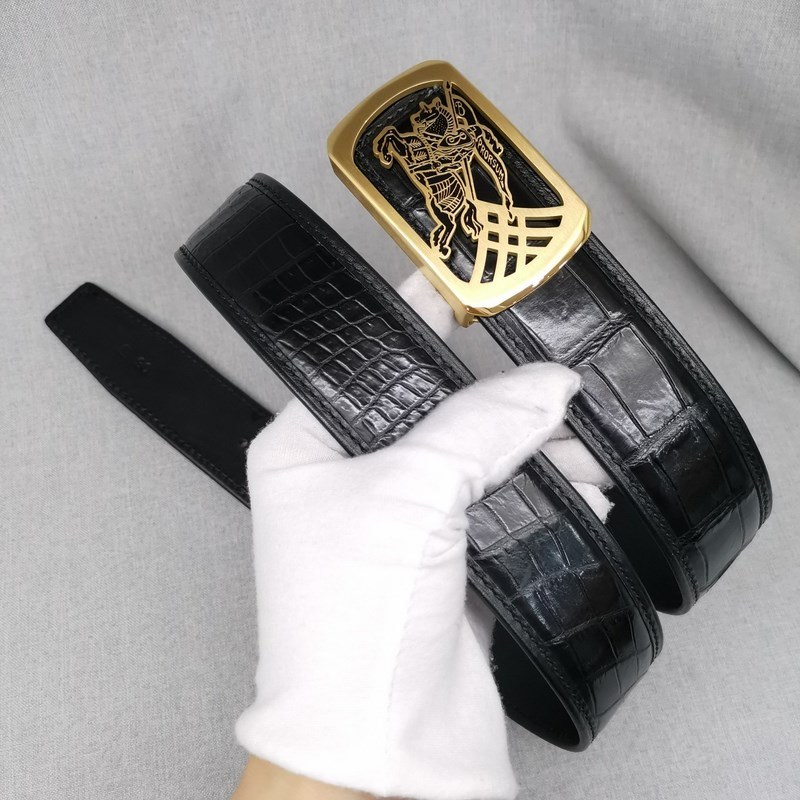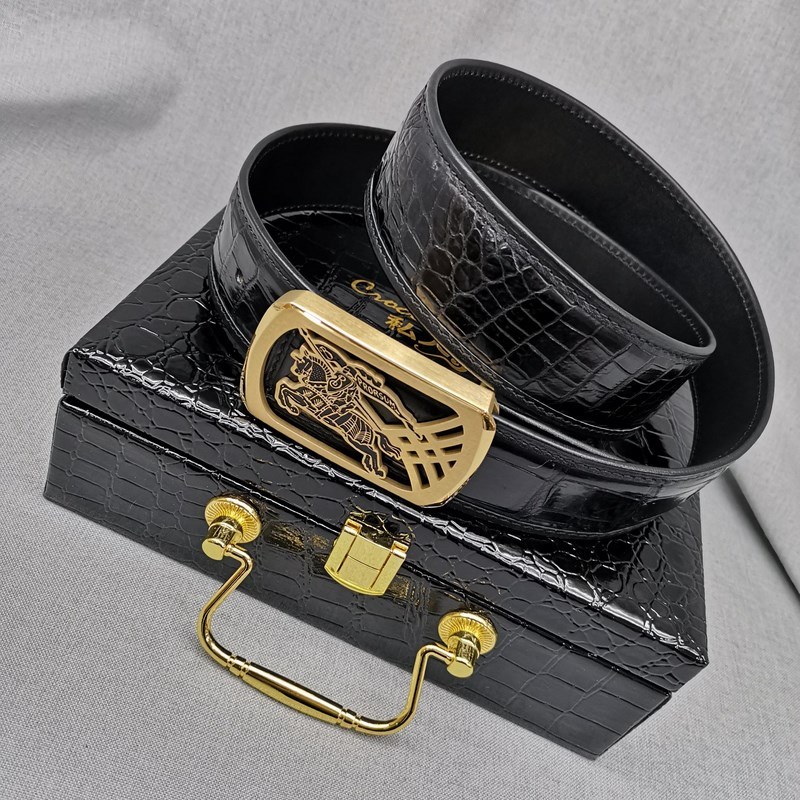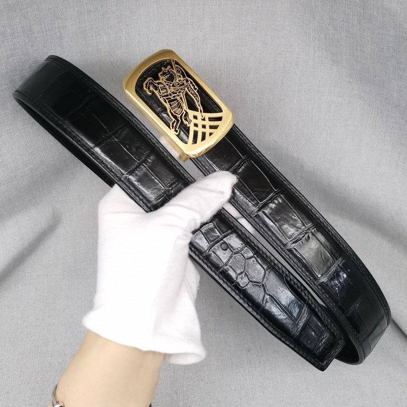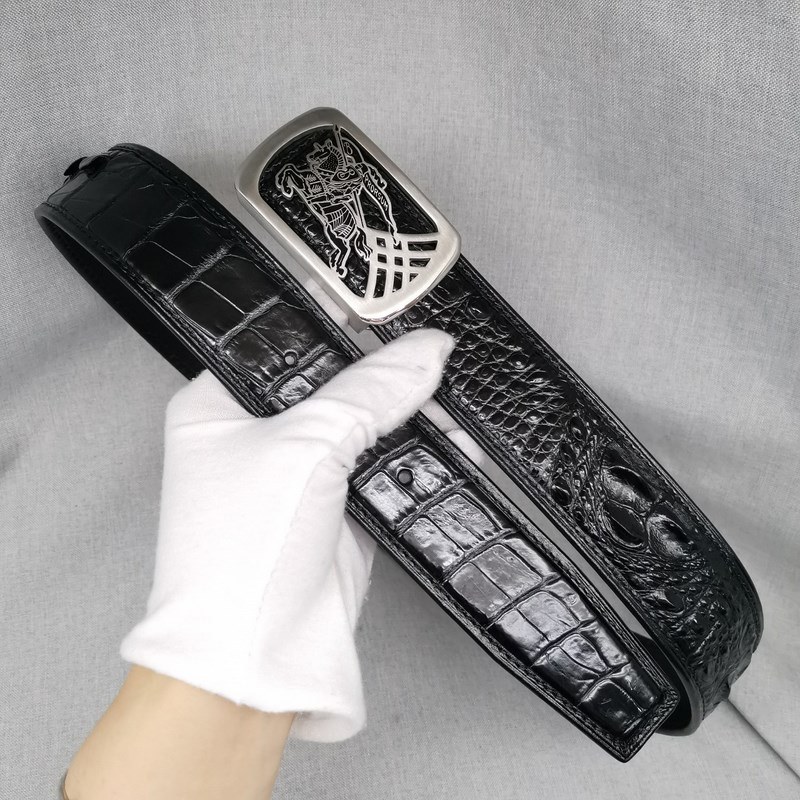 Burberry crocodile leather black bone skin belly no stitching plate buckle strap