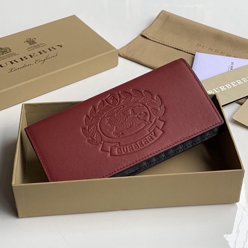 Burberry wallet. Embossed badge leather long two-fold wallet original product of B family~~, made of selected smooth Italian tanned leather, decorated with brand embossed badge, counter quality, fine workmanship, real shot, 40778361 red, size: 19cm*10cm*2.5cm