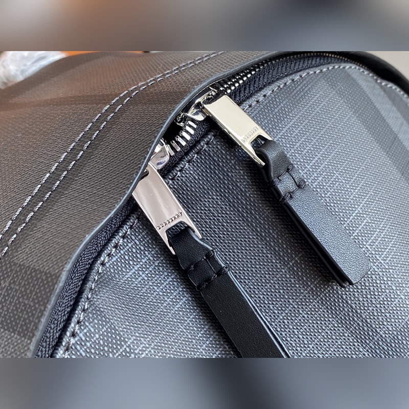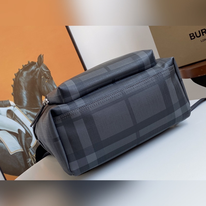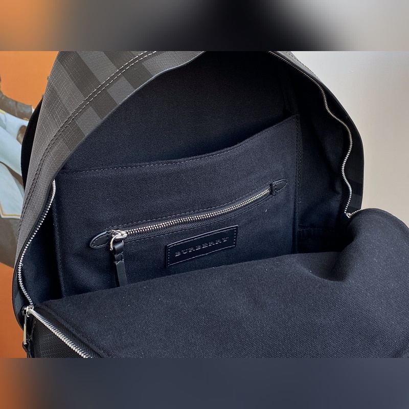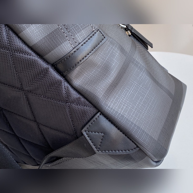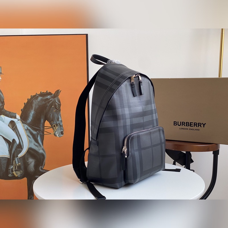 Burberry PVC Plaid Backpack Model: 2070 Charcoal Grey Original imported two-tone PVC material Durable and practical London plaid backpack with elegant leather trim. Multiple zipper pockets can be used to store all kinds of personal belongings in an orderly manner. Quilted back panels provide a comfortable wearing experience. Elegant and versatile style, easy to create a commuter look Outer layer: 100% PVC; leather decoration Lining: 100% polyester 1 zippered outer pocket; 1 inner slip pocket; 1 zippered pocket Top handle; adjustable shoulder strap Zipper closure Size: 29 x 15 x 40cm