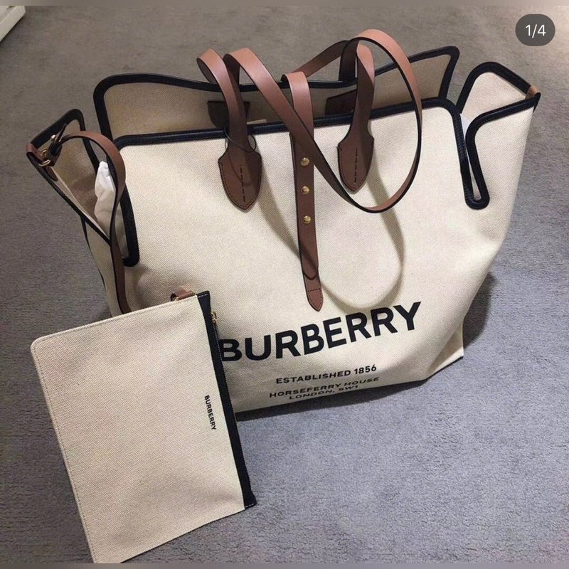 Made of selected cotton canvas and flexible leather, the straps are inspired by the brand’s iconic trench coat and printed with fashion show Horseferry pattern. Use a detachable zipper storage bag to carry small essential items. Size: 35 x 15 x 31cm No.: XL9618760