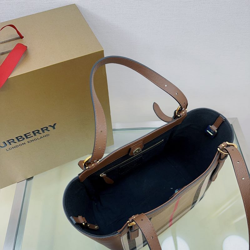 The iconic “Canter” handbag from the top brand B is made of luxurious grain leather and paired with British fine-spun House check cotton panels, produced in an Italian workshop. The equestrian-style shoulder strap is inspired by the saddle buckle. Dimensions: 26 x 15.5 x 29.5cm 30291
