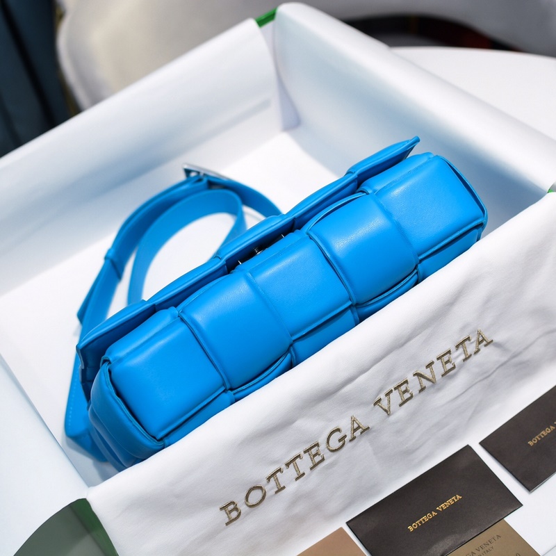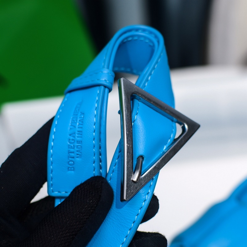 The bag can be held or worn cross-body, it is elegant and simple, with sheepskin lining, no interior lining, smooth nappa lambskin zipper pocket, adjustable thin shoulder strap with iconic triangle buckle, Size: 26x18cmx8cm Number: BV96181320