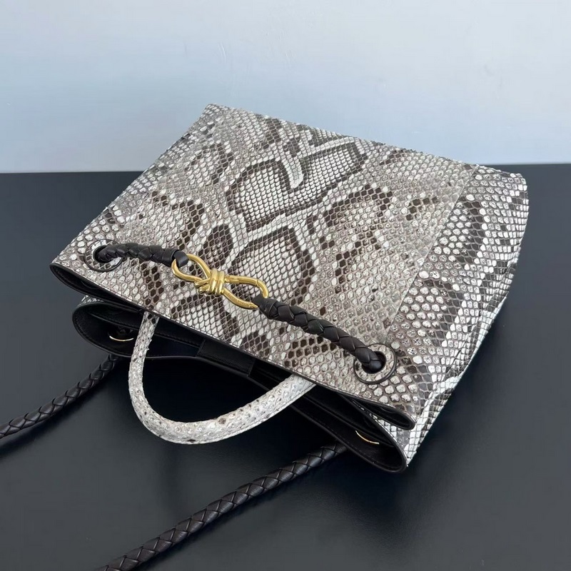 #Bv new Andiamo snakeskin 743572 Andiamo snakeskin is a fashionable item with great luxury and unique charm. It uses top-grade snakeskin as the bag body material, which is famous for its toughness and durability, bringing unparalleled texture and feel to the bag. The bag body is matched with a metal knot buckle, which not only enhances the overall luxury, but also makes the bag very collectible. The sliding shoulder strap can be carried in a variety of ways to meet the needs of different occasions. It is a beautiful and exquisite bag.