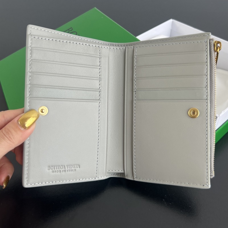 #Bv Woven Bifold Zipper Wallet 749940 A small and exquisite wallet for both men and women. Elegant and fashionable shape, combining classic design and practical functions, perfectly showing the texture and neatness of sheepskin, snap button opening and closing. Equipped with 10 card slots, a banknote compartment, and a zipper coin purse. Meets all the functions of a wallet. Multiple color options. A good choice for gifts or personal use.