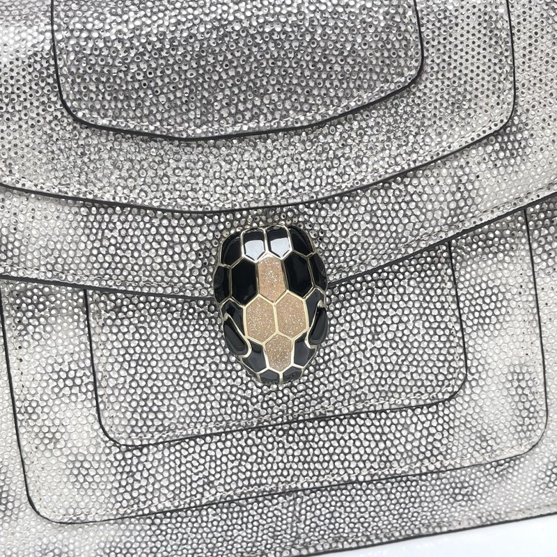 BVLGARI 2019 early spring limited edition new model – water snake skin model is shipped. The silvery white color is super beautiful, and the silvery white color is like the stars in the sky twinkling. The color of the snake head and franc of this snake skin is super matched, more like a work of art. Model: 34559 Size: 20*15*5cm Comes with a counter gift box