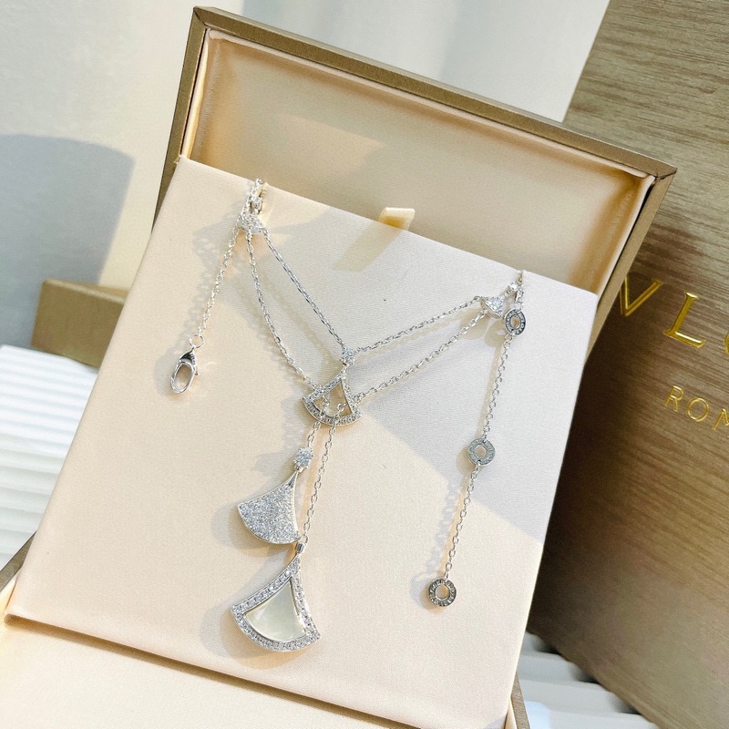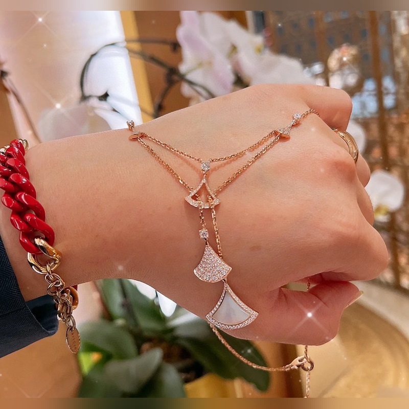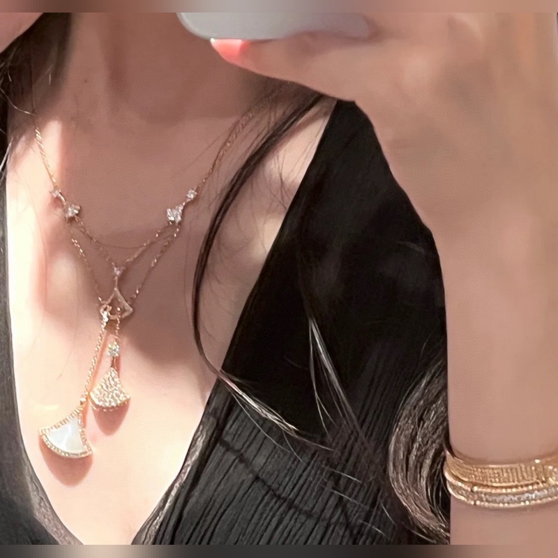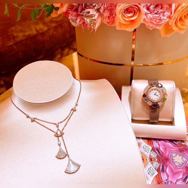 Bvlgari’s new Diva series five-skirt necklace is made of various classic fan-shaped skirts of the Bvlgari family. It is electroplated with 18k gold, platinum and rose gold.