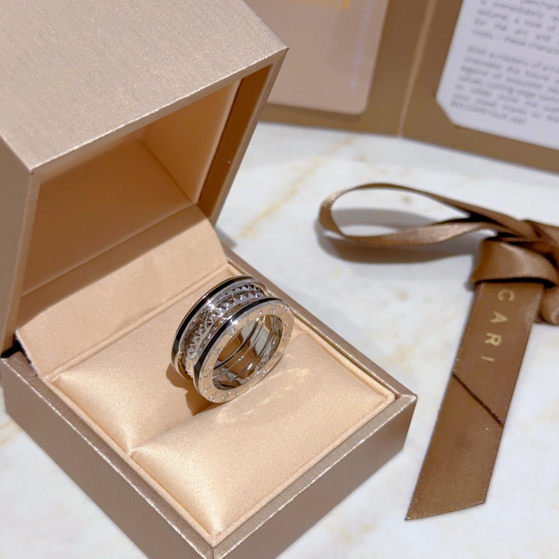 Bvlgari ring V gold material with logo. Bvlgari DIVAS’ DREAM series with rose gold in the middle and white gold on the edge. Perfect appearance, unbeatable details, that unique color is completely impeccable, and it is decorated with a classic ring shape design. It is simple but elegant and eye-catching. The combination of rose gold and brown ceramic makes it more complex and elegant. Unisex Bvlgari ring size: 6789 10 11