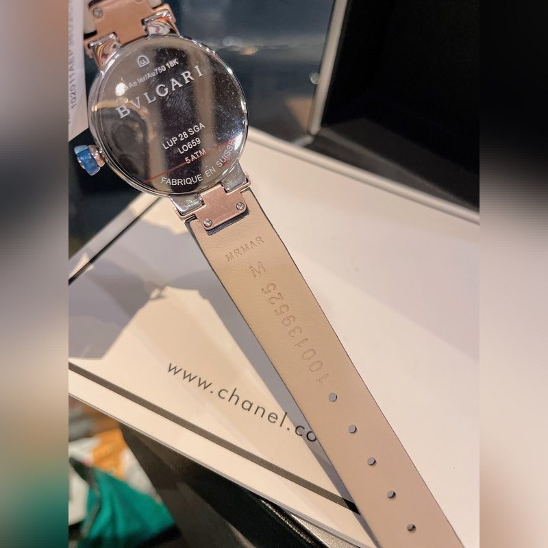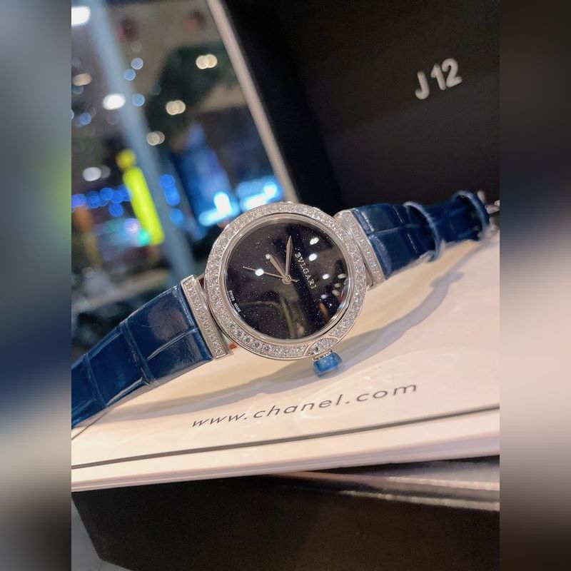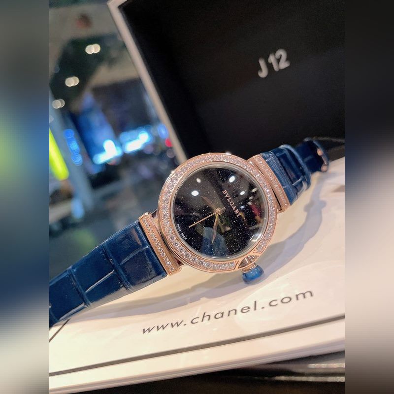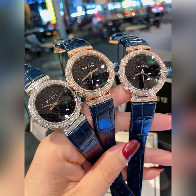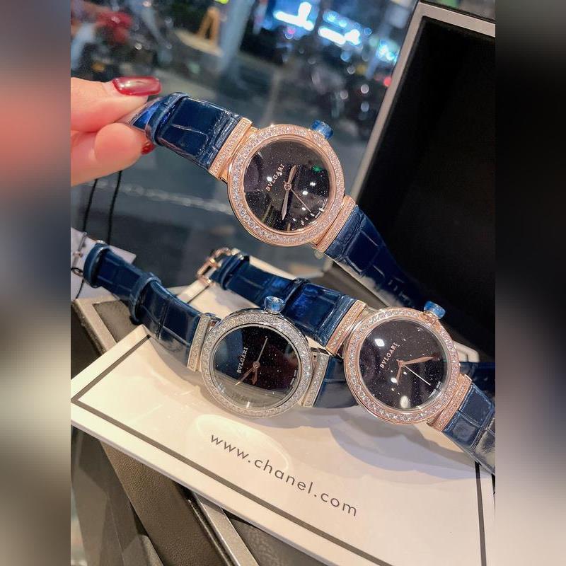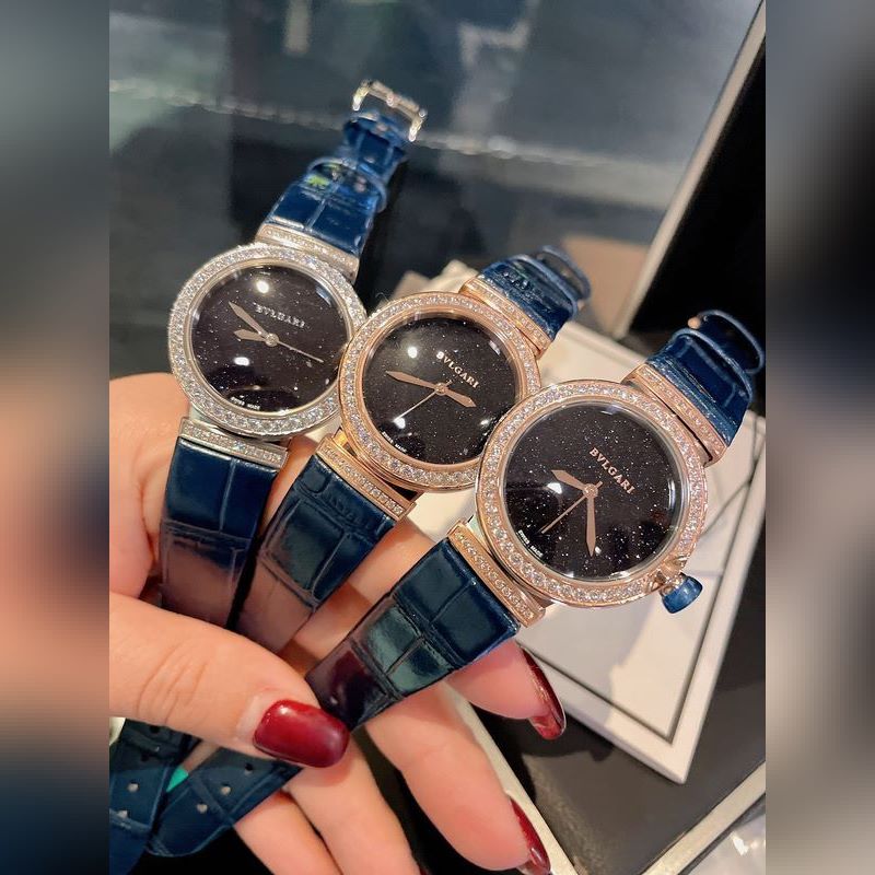 The most special feature of Bulgari LVCEA series is the use of blue crystal sand Aventurine to make the dial, paired with a gorgeous diamond-studded bezel, showing a romantic visual effect like the starry sky. Imported quartz movement, arched sapphire glass mirror, size 33mm wide and 10mm thick