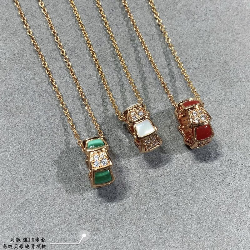 V gold material, high-grade mother-of-pearl, natural malachite, Bulgari high-grade mother-of-pearl interval diamond snake bone necklace, high-grade original buckle, original engraving, beautiful necklace, one-to-one customization, look at the workmanship, details, words, prints, and stones, all are inlaid very well, popular, luxurious and beautiful