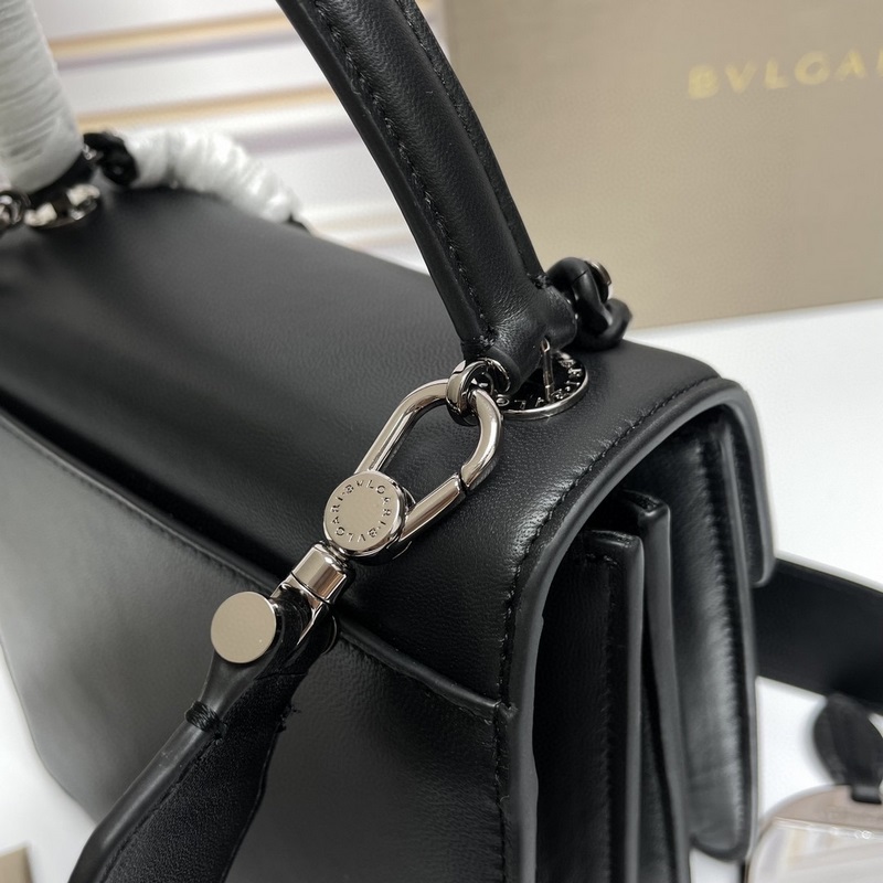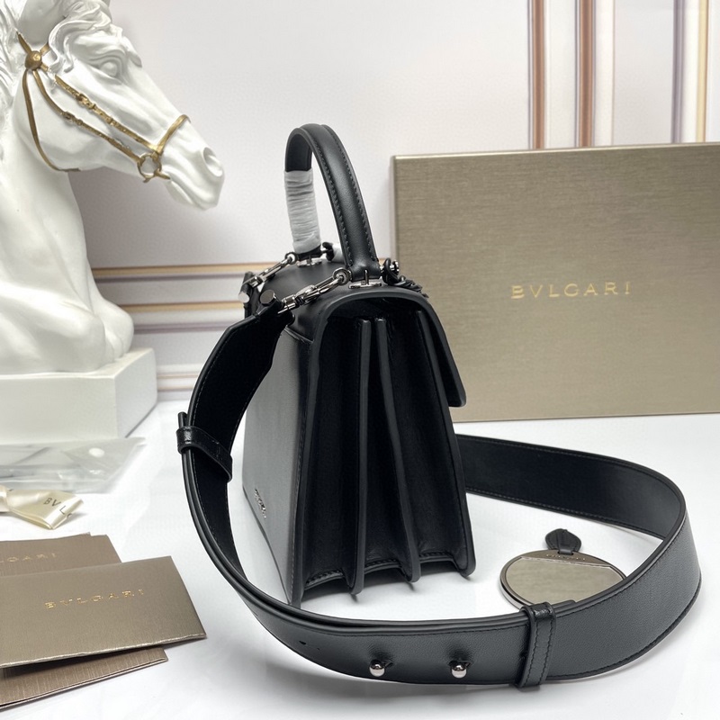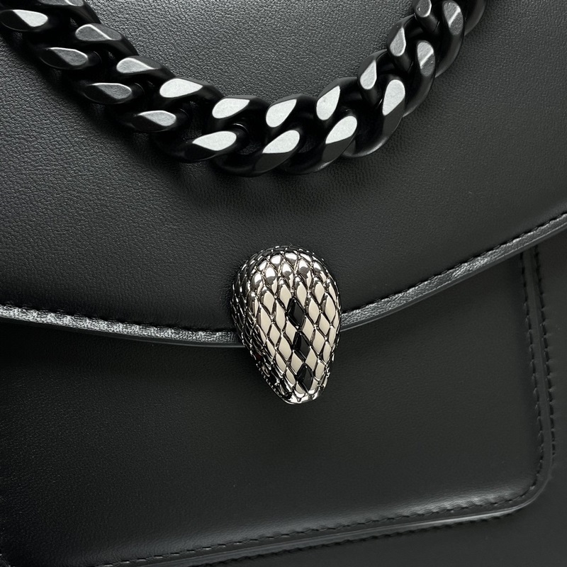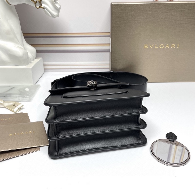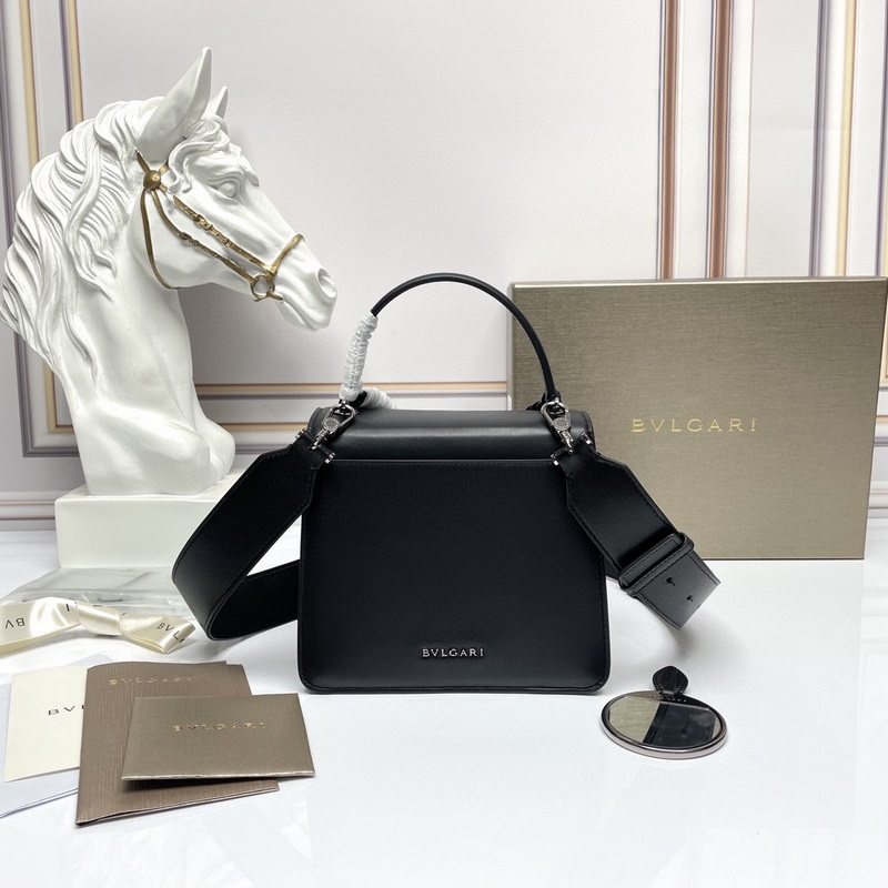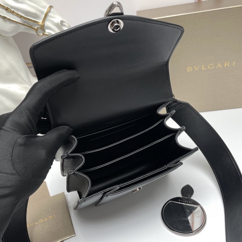 An inner mirror pocket, a front pocket and a back patchwork pocket