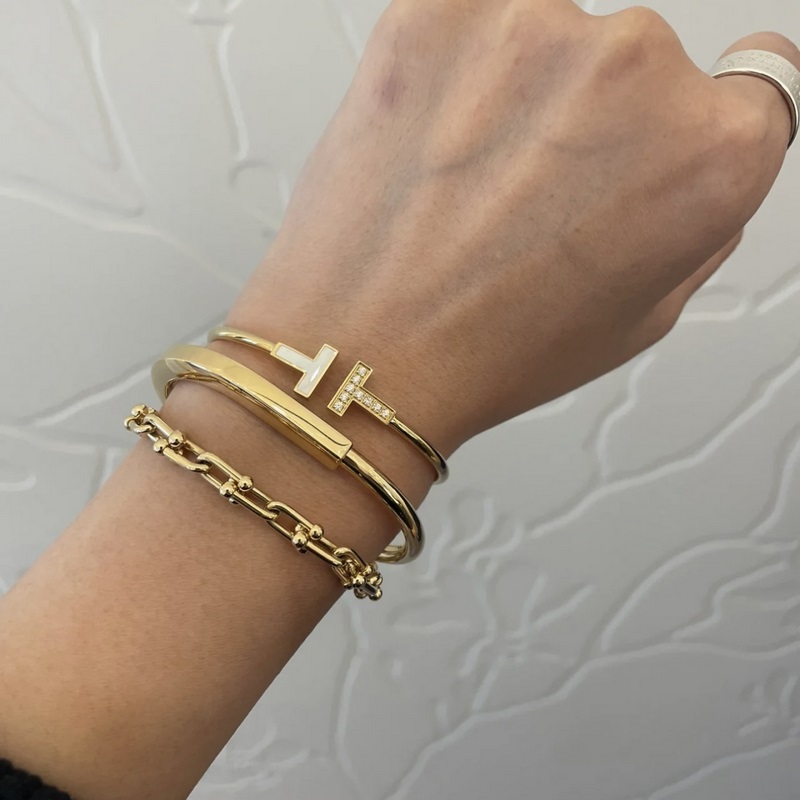 C343 Tiffany Tiffany 23c new hot debut U-shaped lock smooth bracelet European and American style must-have for everyone Super fine craftsmanship V gold material electroplated 18k gold Allergy treatment Gold color V gold bracelet 125220