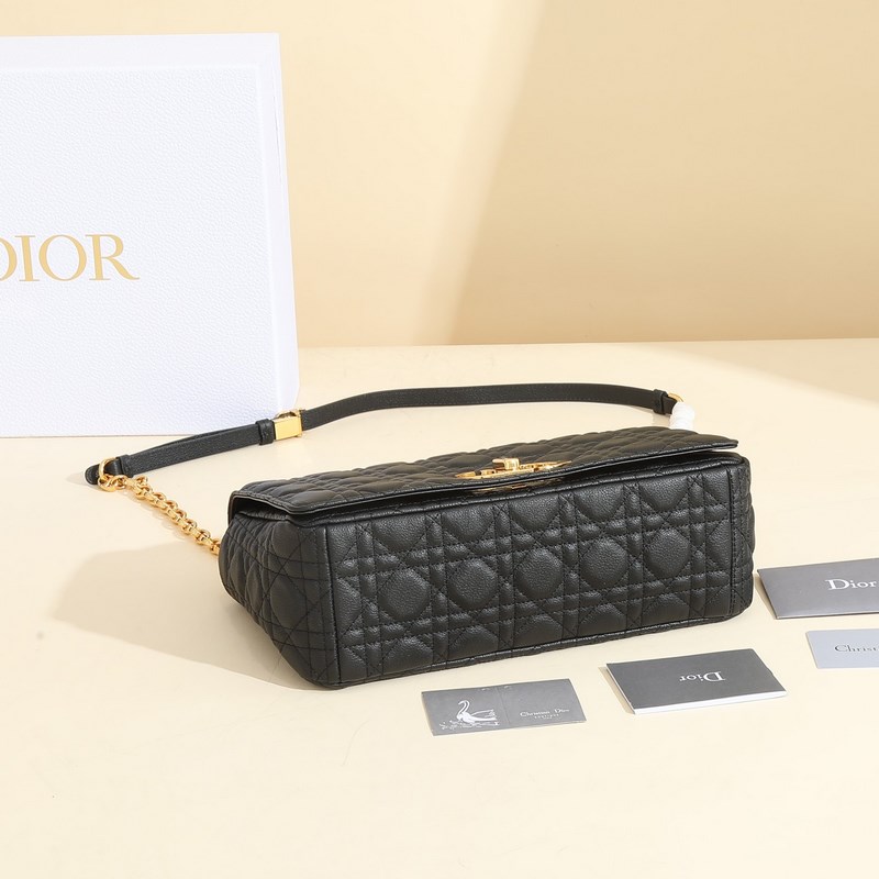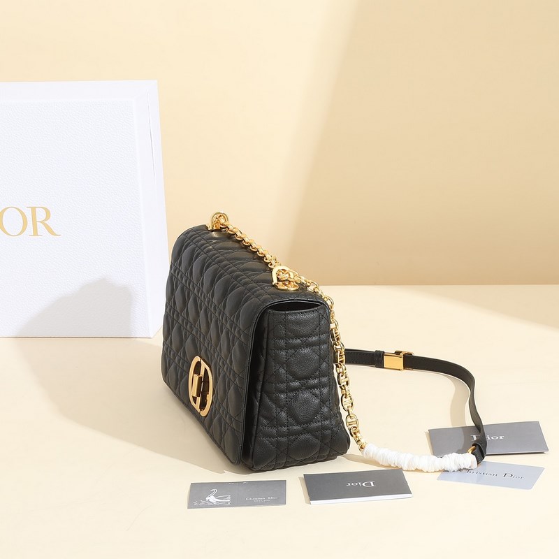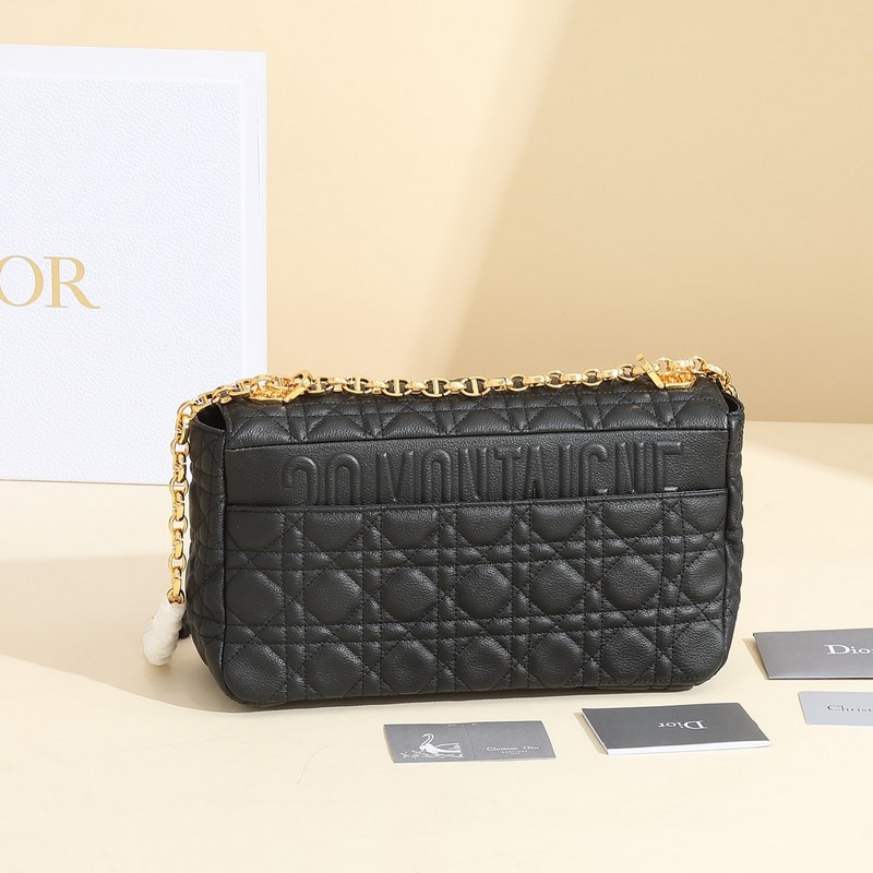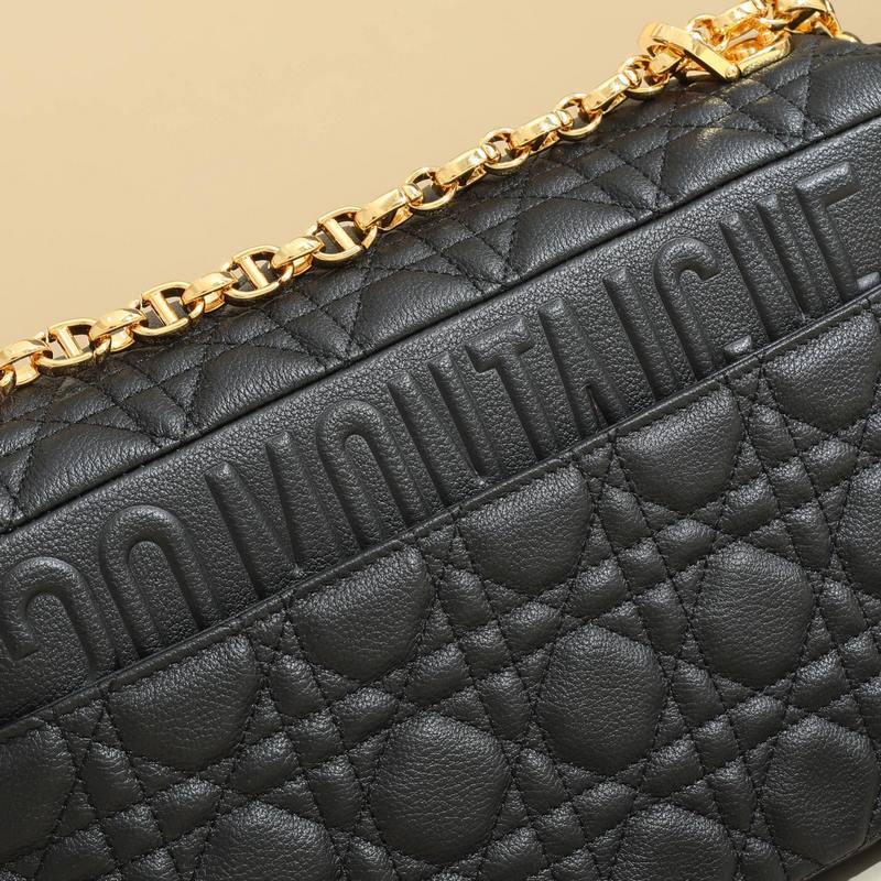 The Caro bag is crafted from cowhide leather and features quilted details with the iconic cannage stitch. The “30 Montaigne” embossed logo is on the back, the material is soft, and the flap is decorated with a vintage gold-finish metal “CD” buckle, inspired by the closure of the Christian perfume bottle. The large style features a detachable iconic “CD” chain link shoulder strap, which can also be replaced with an embroidered wide shoulder strap for a more elegant and fashionable look. It can be easily worn for both daily looks and dinner parties.