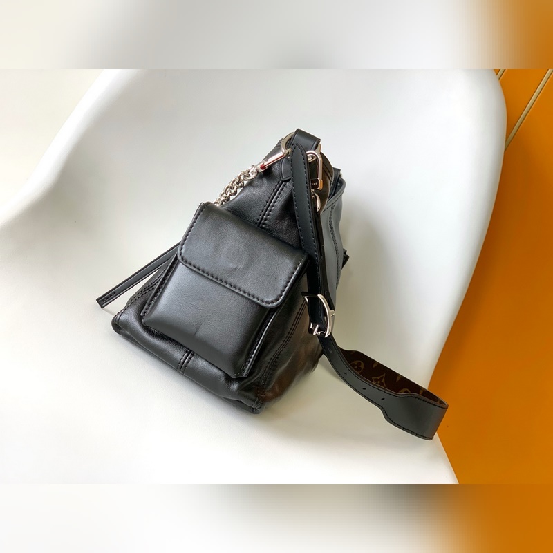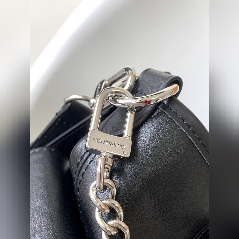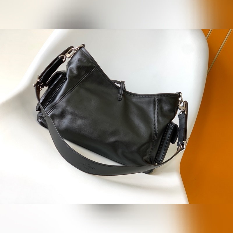 Small M24861 Genuine development of top-grade original imported waxed calfskin This small CarryAll Cargo bag has two pocket compartments on the side, showing a stylish wrinkled effect, and a deep background with polished metal parts and lazy configuration, making it a good choice for day and night occasions. Removable shoulder strap and chain strap to achieve a variety of styling possibilities.