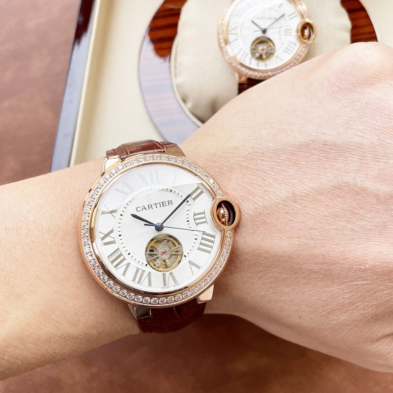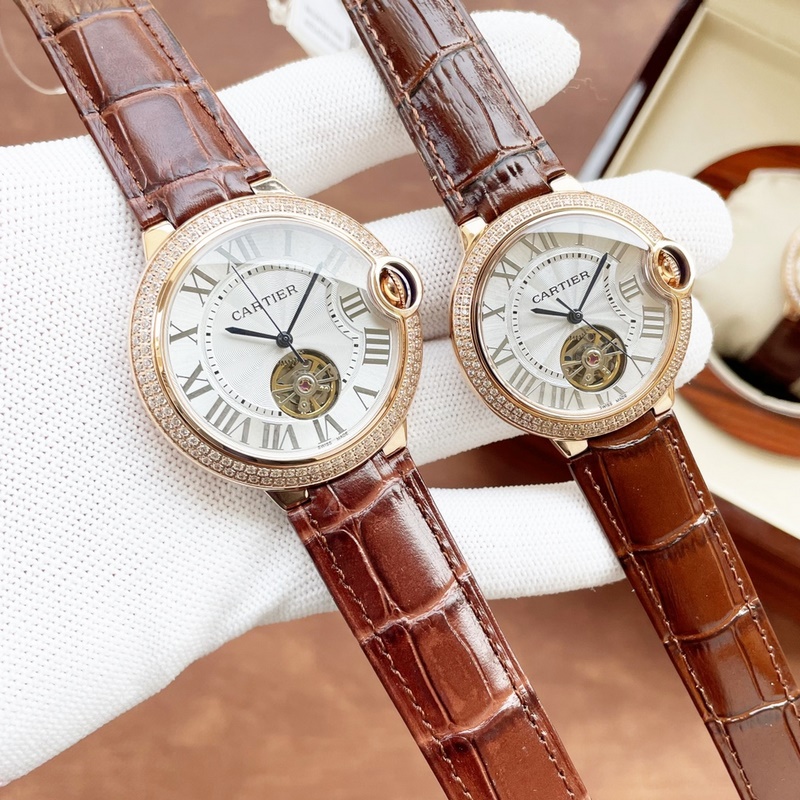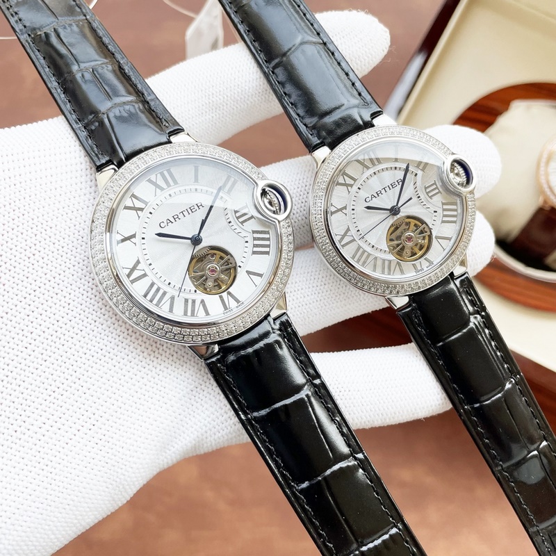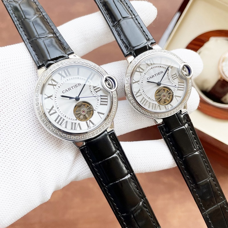 The latest couple watch tourbillon on the Internet: size 42mm36mm Cartier-Cartier Blue Balloon Flywheel Series Fisheye Sapphire Mirror) The best-selling white Roman nail dial exudes fashion and beauty. The movement flywheel operation is clear at a glance, showing noble luxury. Water droplets: Fisheye bubble double sapphire mirror) (made of 316 stainless steel) (steel blue sword-shaped pointer) 316 steel belt original buckle type, Italian imported cowhide strap perfectly combines classic and innovation, please look for exclusive quality (bottom cover code warranty card tag, independent packaging)
