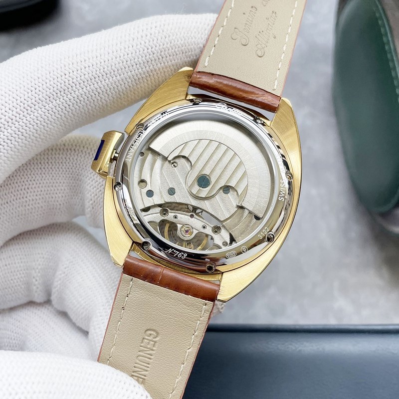 Noble and elegant, gentlemanly style, excellent quality, hot selling in the city. It adopts fully automatic mechanical movement, top 316 stainless steel case, imported calfskin strap, mineral super mirror, size 42*13MM