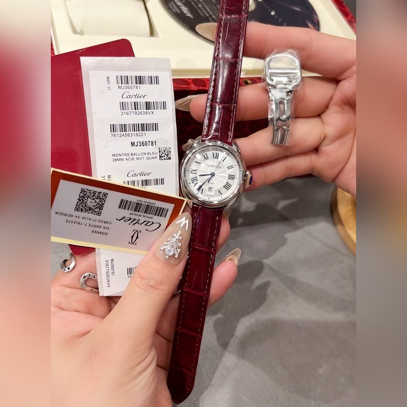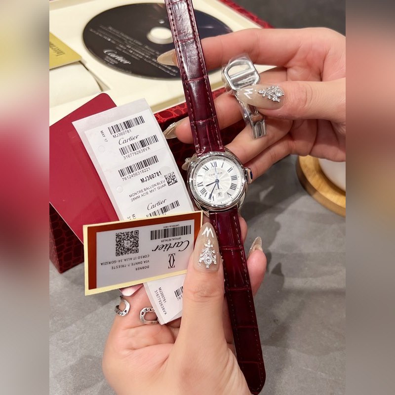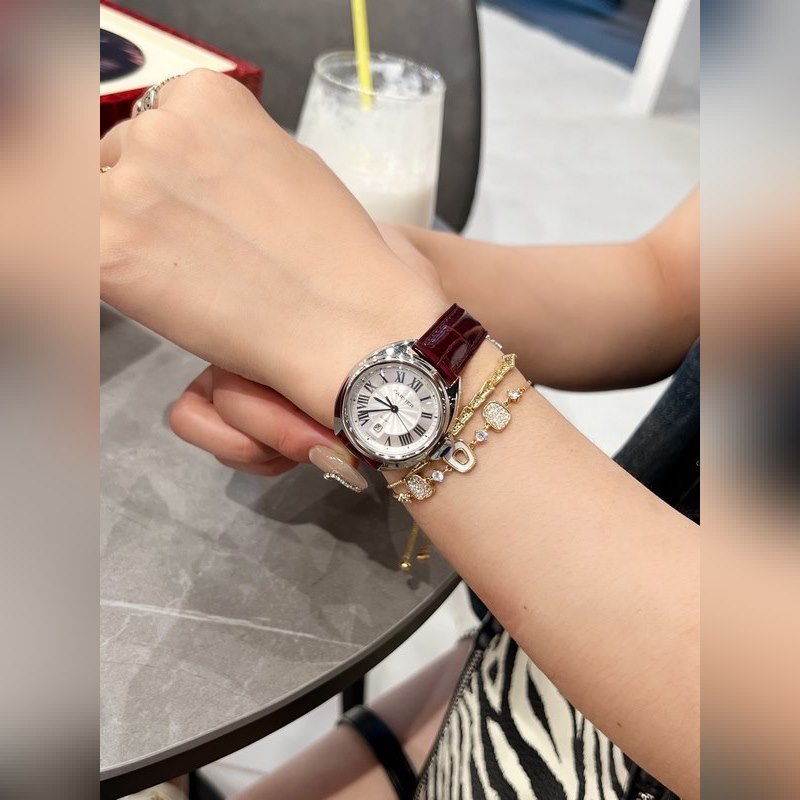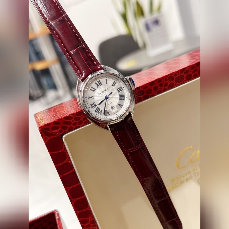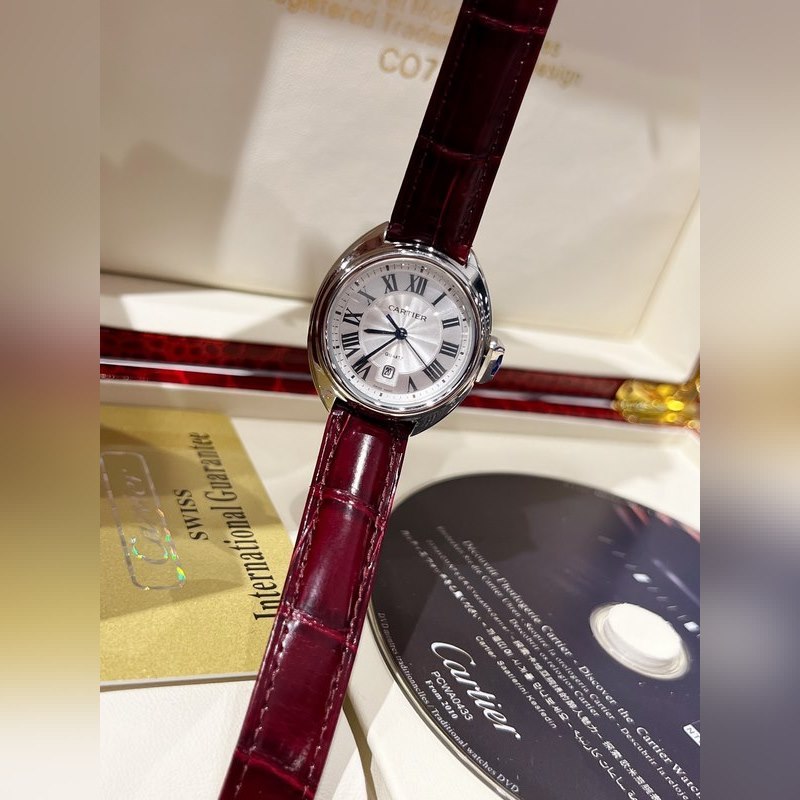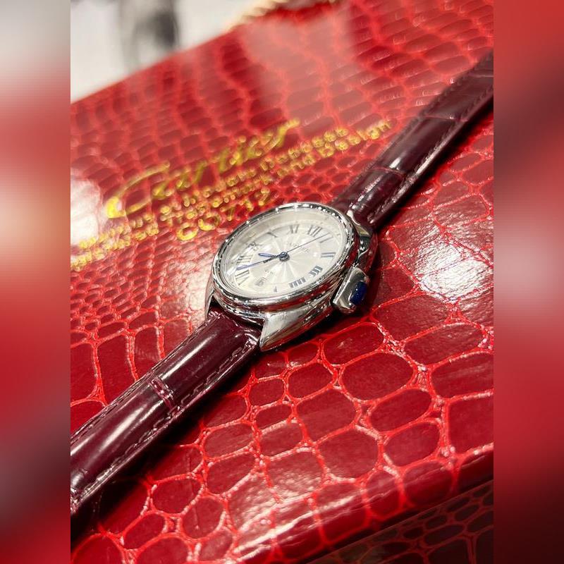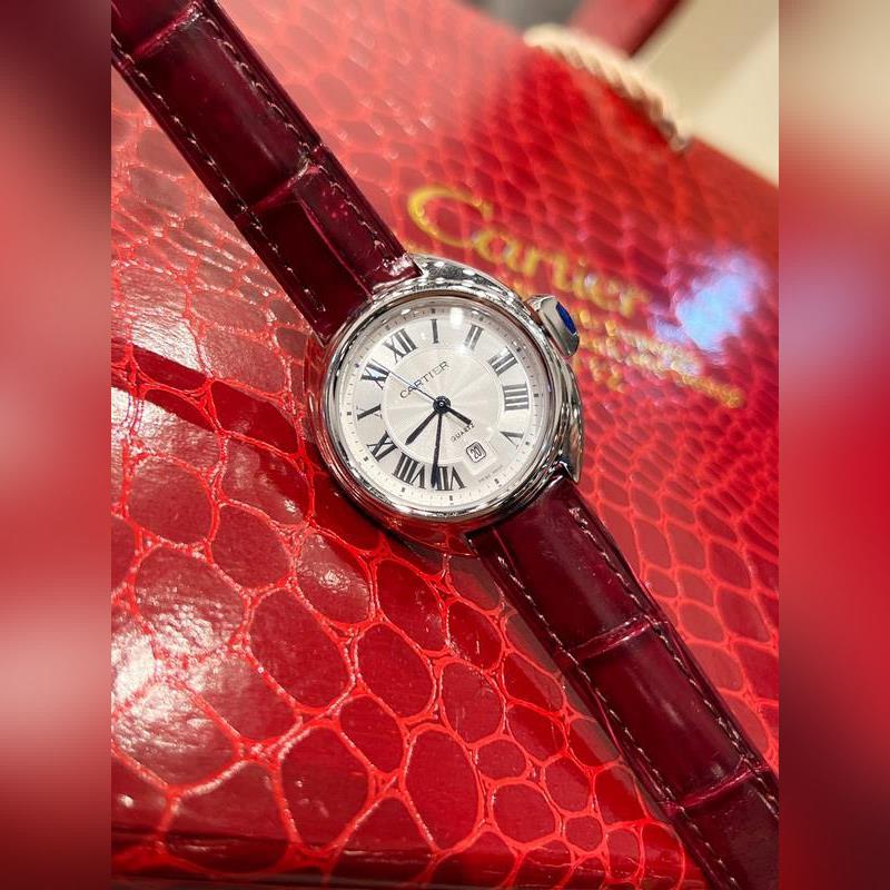 Retains Cartier’s classic design: Arabic numerals and sword-shaped blue steel hands, a blue stone inlaid on the top of the key-shaped crown, a sun pattern on the carved genuine dial, a date display window at 6 o’clock, the watch is paired with an alligator leather strap, imported original quartz movement, all-steel case, classic design, very recognizable, and suitable for any occasion, it is a very cost-effective watch