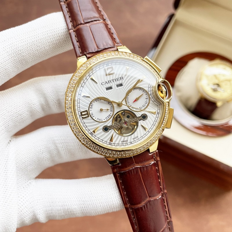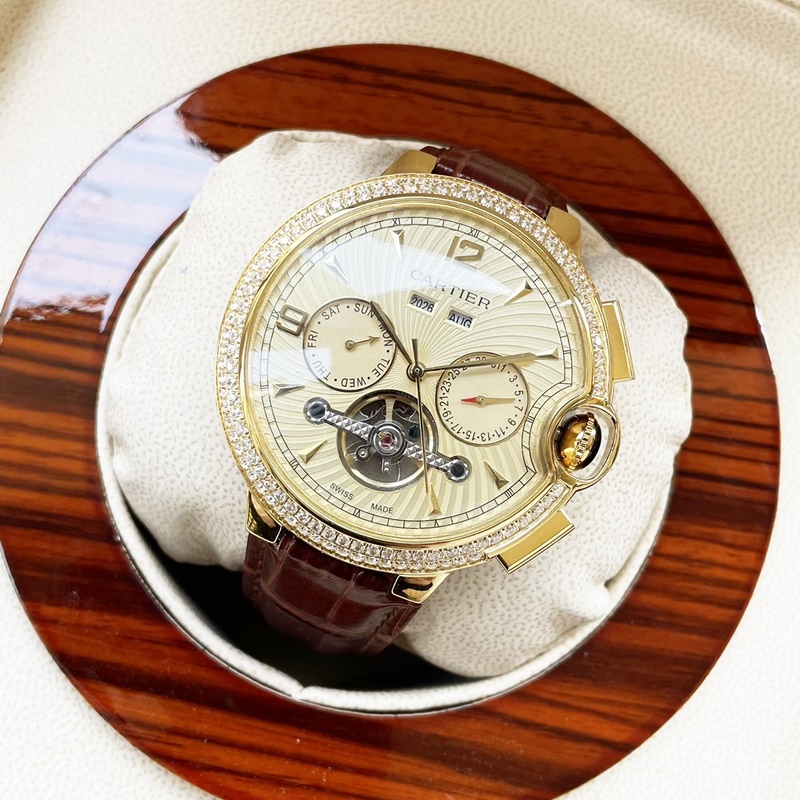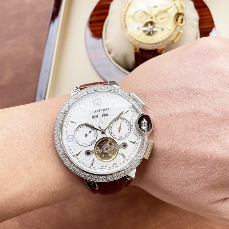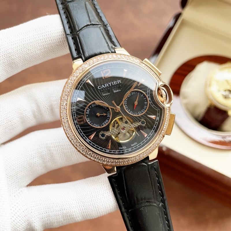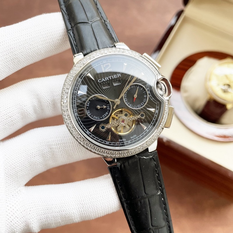 Cartier boutique men’s watch, multifunctional design, noble and elegant, gentlemanly style, excellent quality, hot selling in the city. It adopts fully automatic mechanical movement, top 316 stainless steel case and strap, mineral super mirror, size 46*13