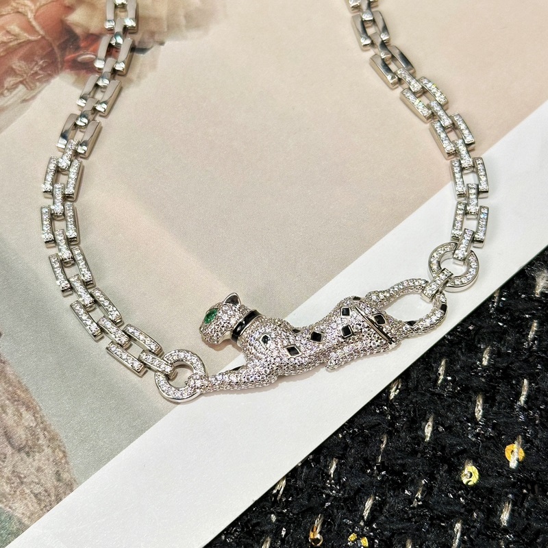 Cartier Jungle series full diamond leopard necklace