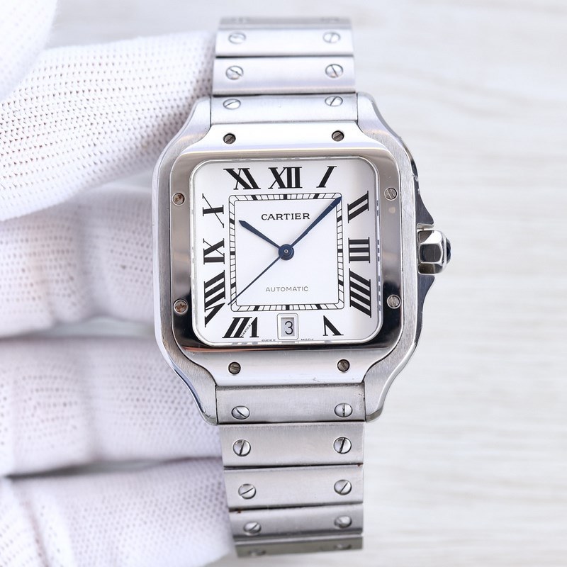 The case is made from genuine mold, using the best imported 316L material2. The dial is made from genuine mold3. The hands are made from Swiss blue needles, which are the closest to the genuine ones4. The glass is treated with Swiss anti-reflection white film/anti-string/anti-handprint AF process, leaving no traces5. The strap is equipped with ergonomic SmartLink disassembly system, the most sensitive quick release function on the market6. The size of the men’s model is 39.8mm x 47.5mm, which is the closest perfect match to the original7. The crown is made of multi-faceted spinel sapphire with a 1:1 mold, which is truly interchangeable with the original accessories. Equipped with Cartier’s two practical inventions, the “SmartLink” bracelet adjustment device and the “QuickSwitch” strap quick replacement device