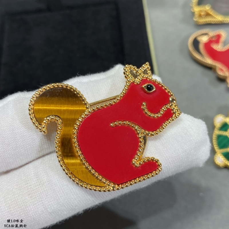 V gold material squirrel 2110340. Van Cleef&Arpels VCA animal series brooches. The small animal brooches are interesting and cute, which makes our childlike innocence immortal. Natural materials, good value for money. Can be used as brooches and can also be matched with chains to make necklaces #Van Cleef&Arpels|Zoo Collection