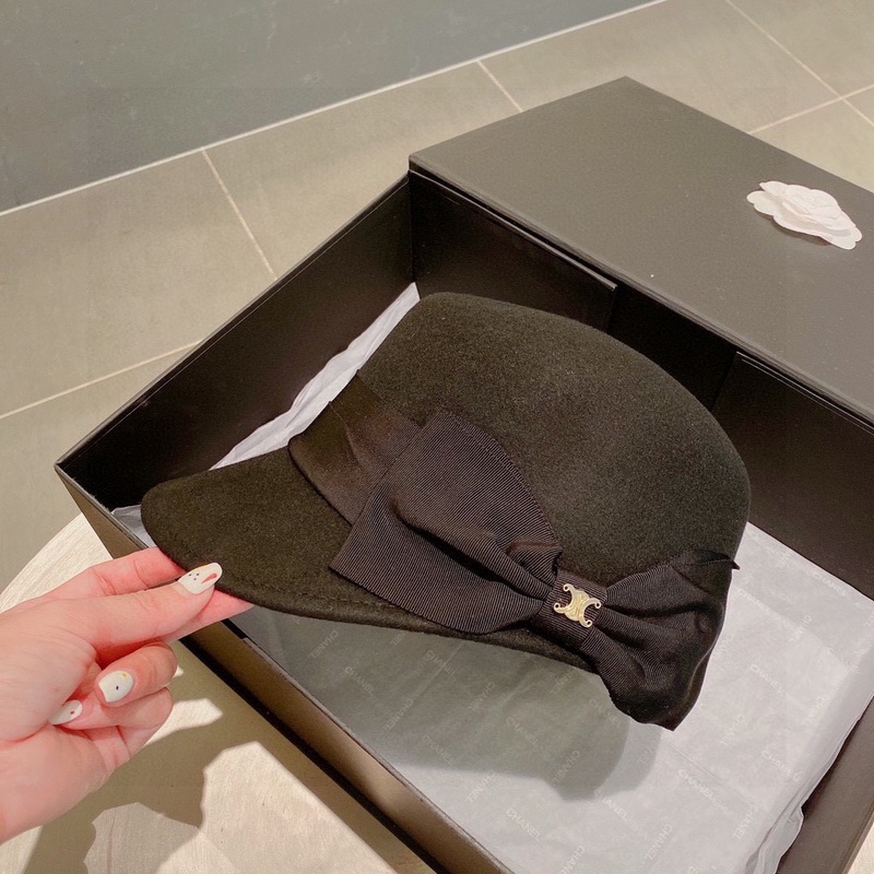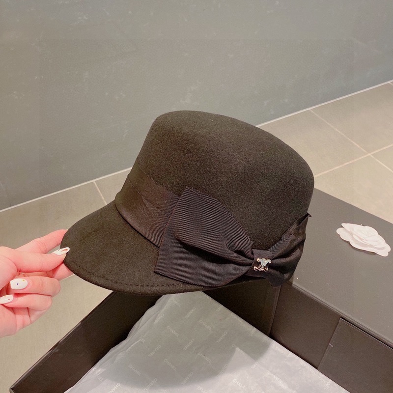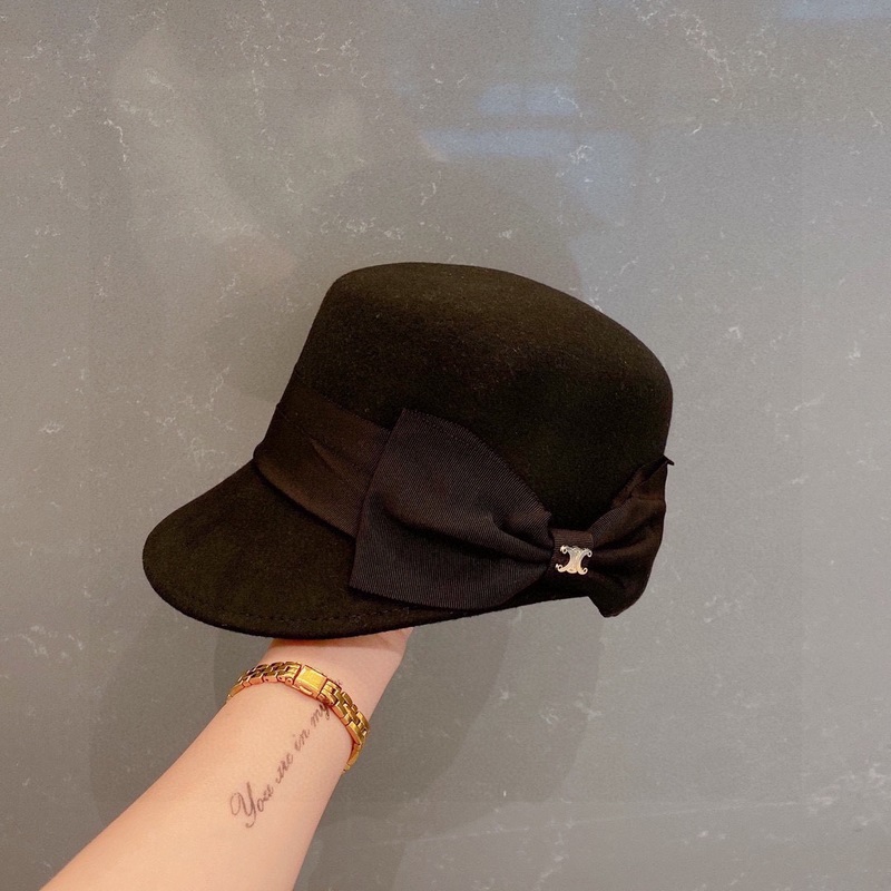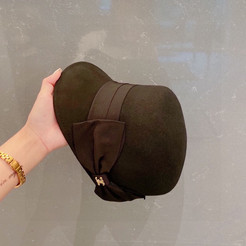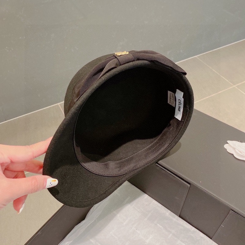Celine 2023 autumn and winter new wool duckbill military cap, 100% wool fabric, knight duckbill cap, side bow, head circumference 57cm black, white, card three colors