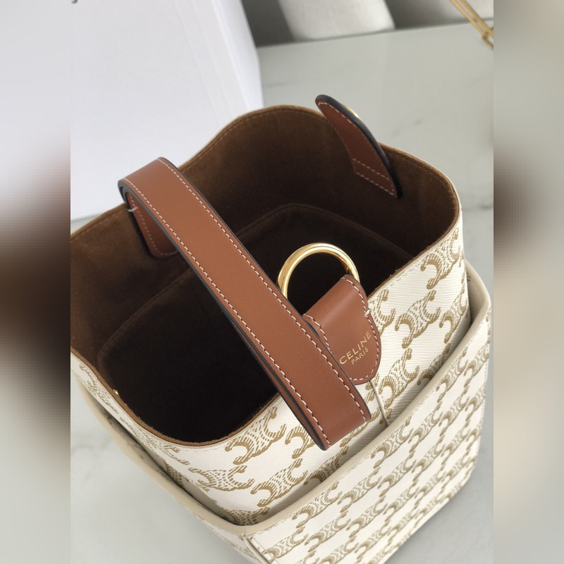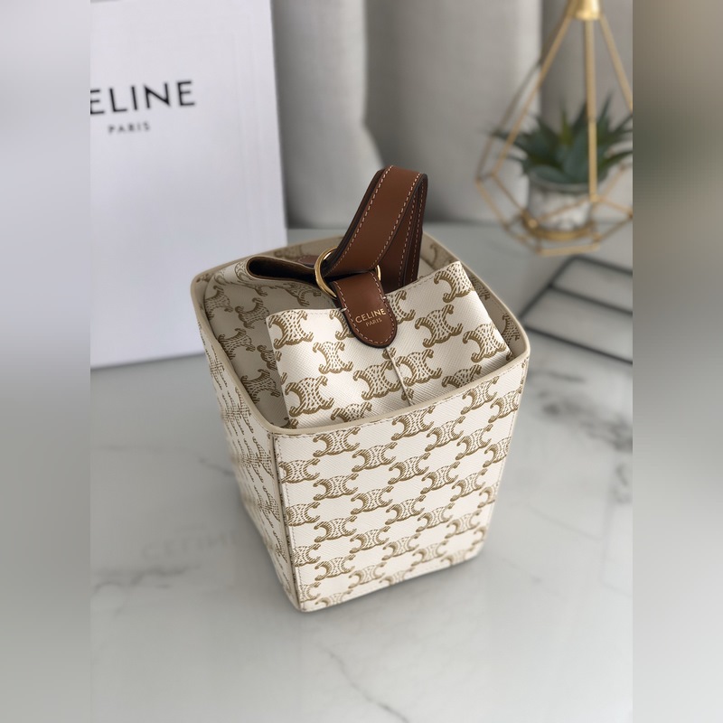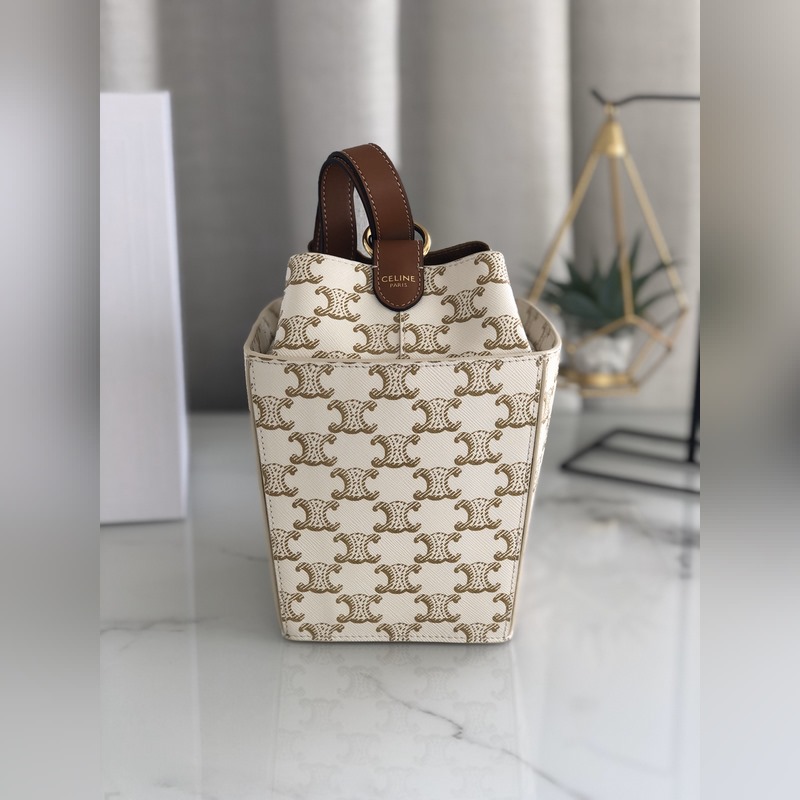 CELINE Cowhide edging Fabric lining Handle Snap button closure