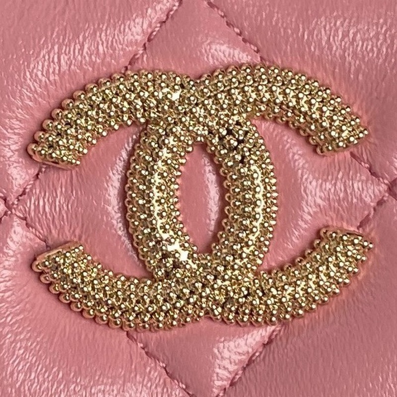 Chane1 24K cosmetic bag AP4301 embossed rhinestone chain is super luxurious. It is made of high-quality sheepskin with super good gloss and feel. What’s more attractive is that the chain is inlaid with shiny rhinestones. It is extremely exquisite. The real thing is so touching. Size: 17cm