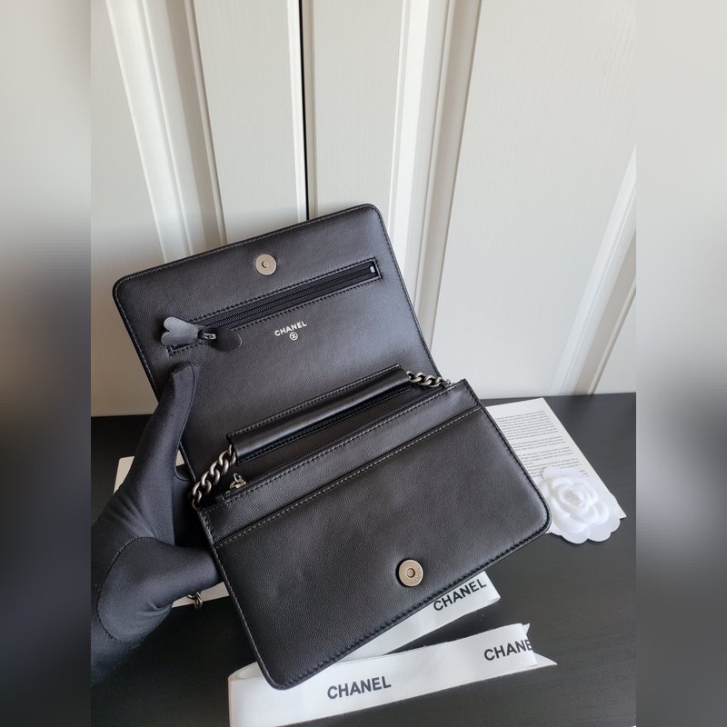 Chanel 21 new arrival Boy classic lucky bag imported sheepskin and fine ball cowhide messenger bag woc 80389 full cover size: 19*13*3.5