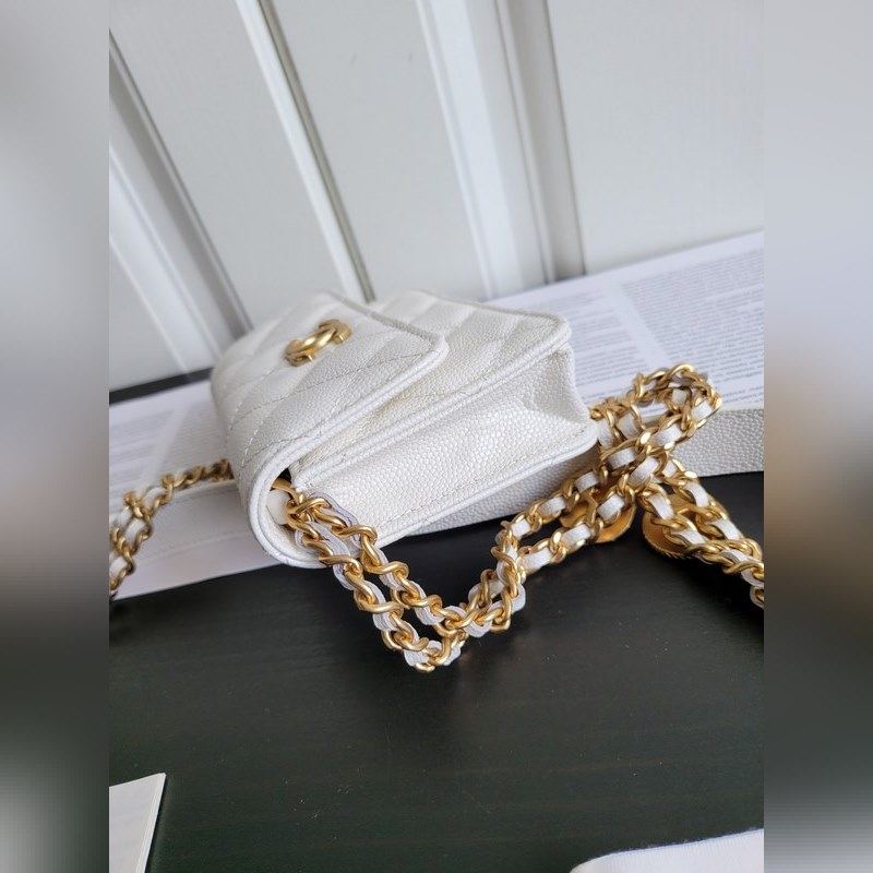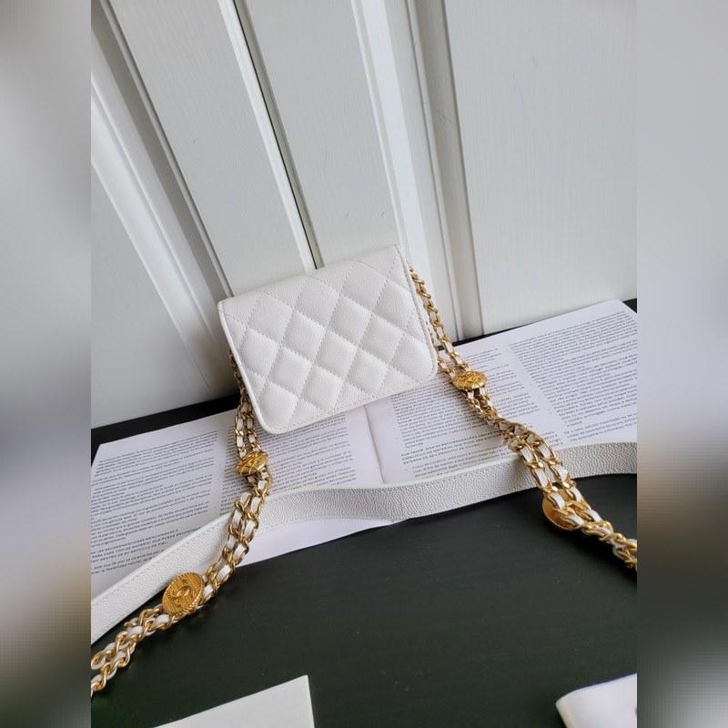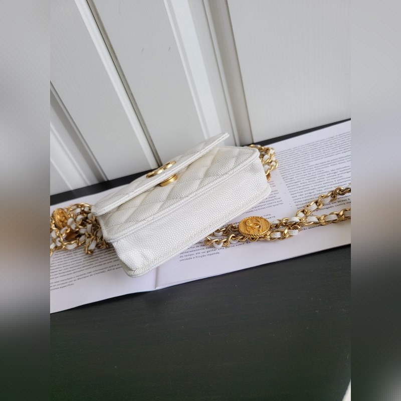 Chanel 22a fine ball grain cowhide gold coin mini woc small square bag crossbody bag Size 9*12.3*3.2cm