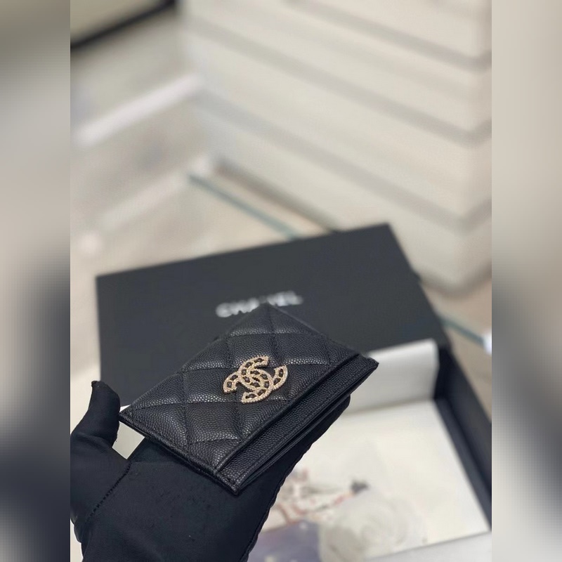 Original quality with serial code Chanel 22s spring and summer new style full diamond double small card holder