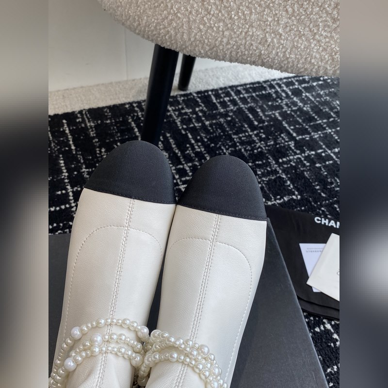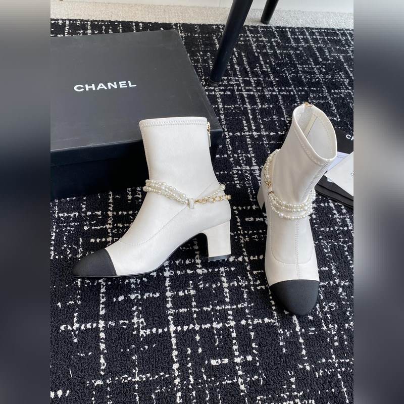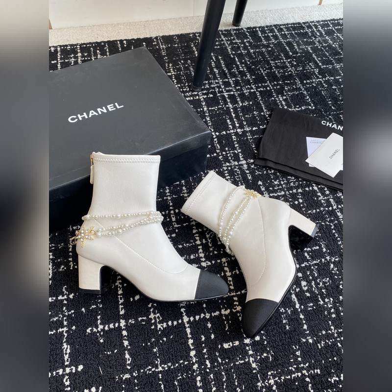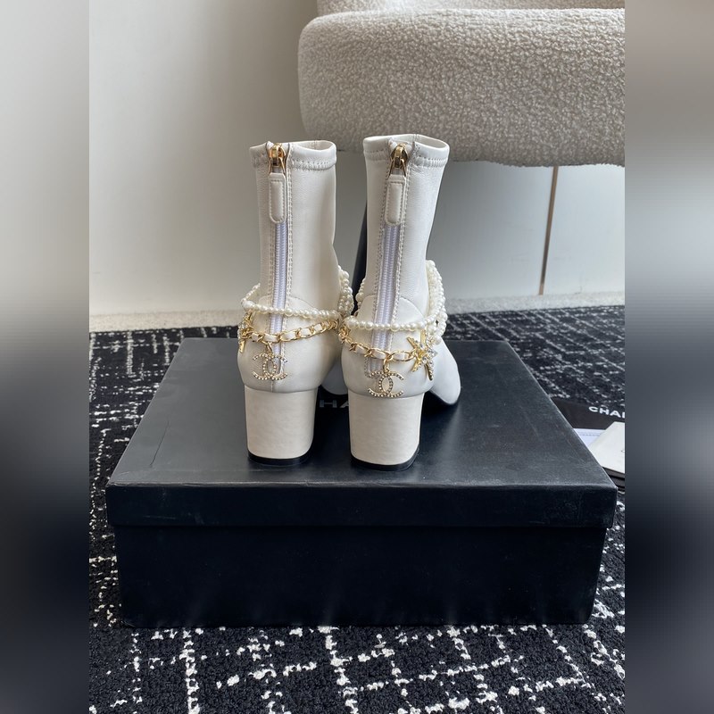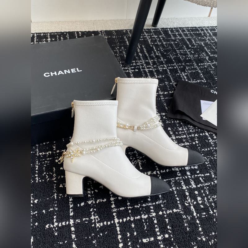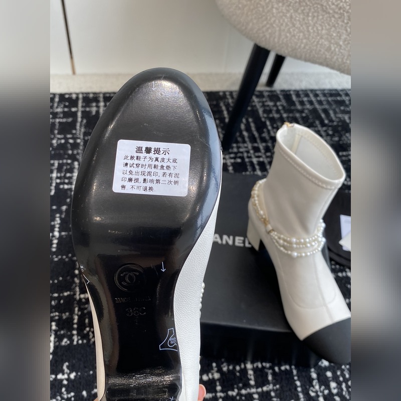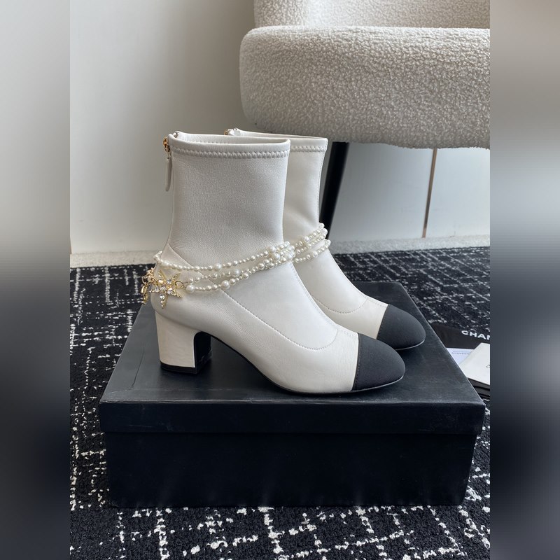 Chanel 24 autumn and winter new round toe thick heel pearl short boots